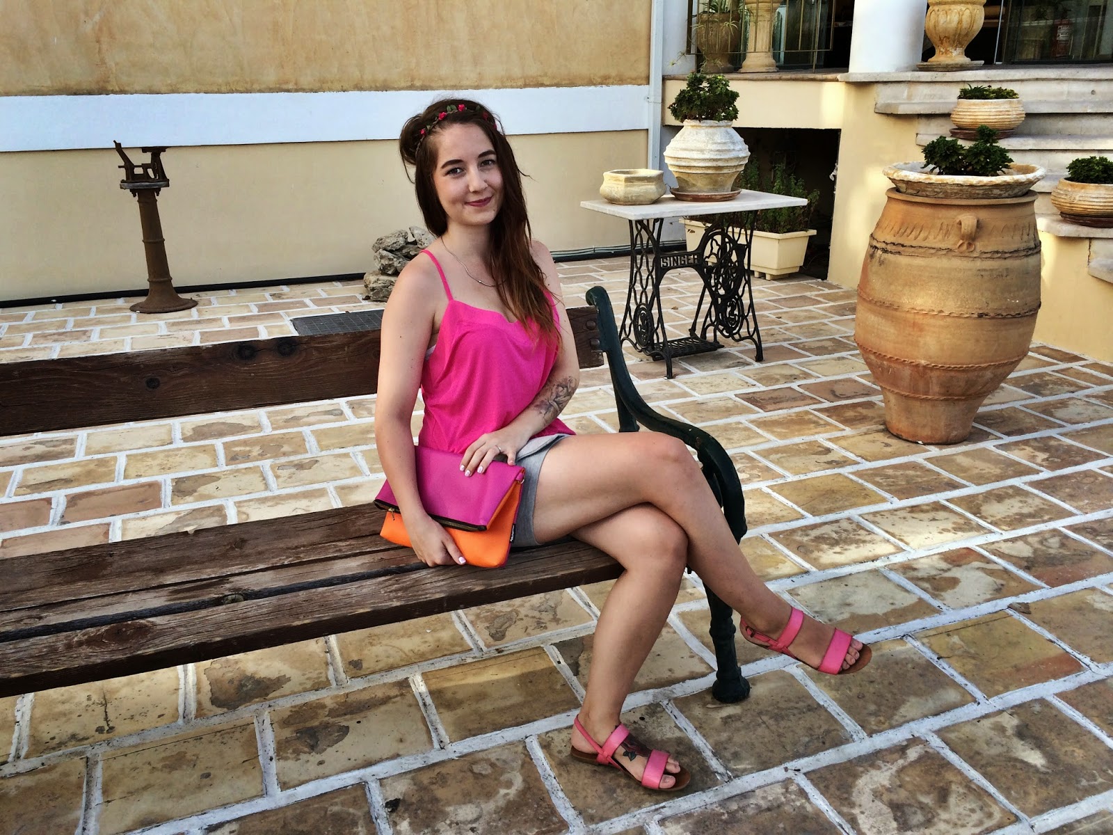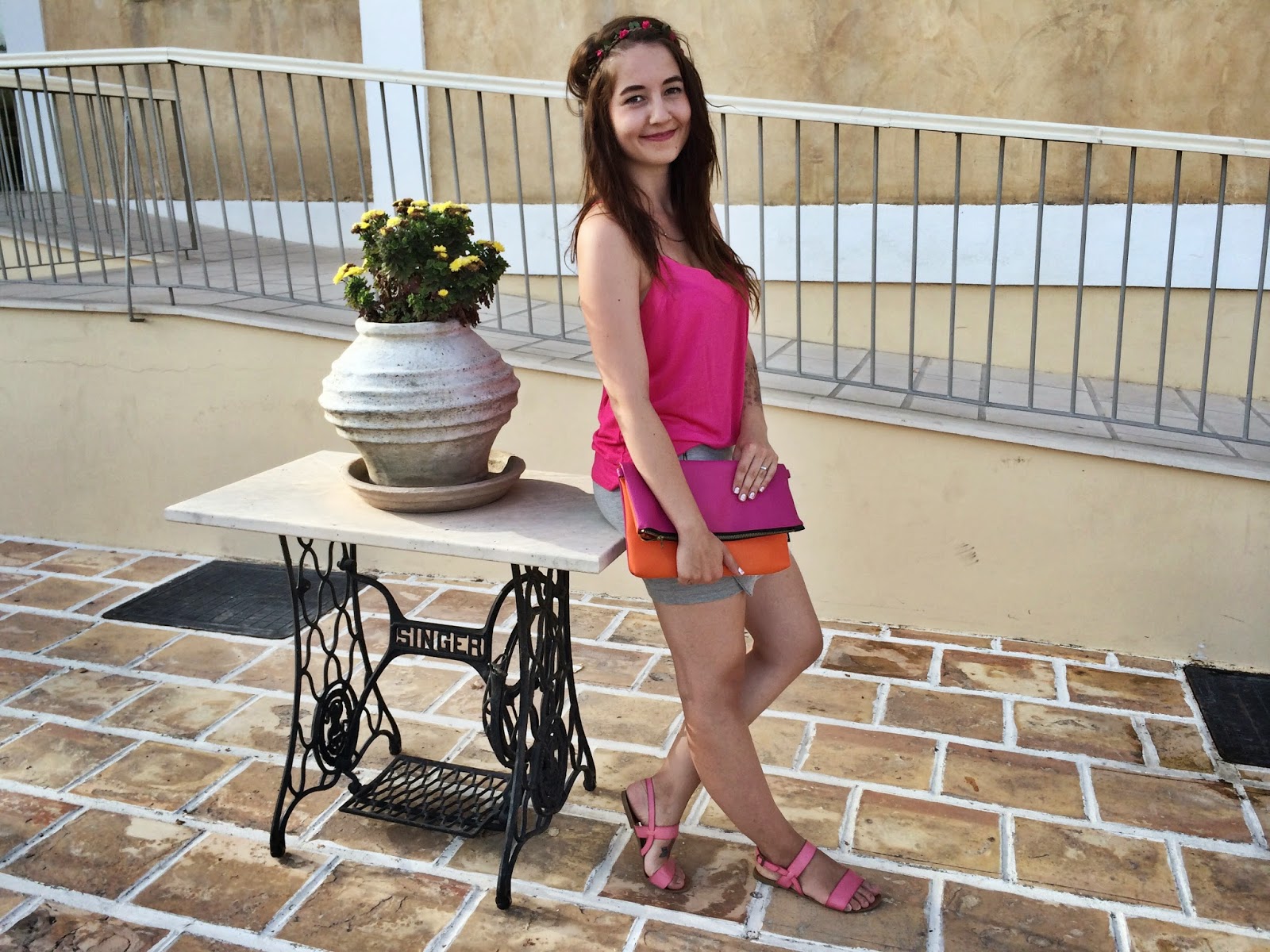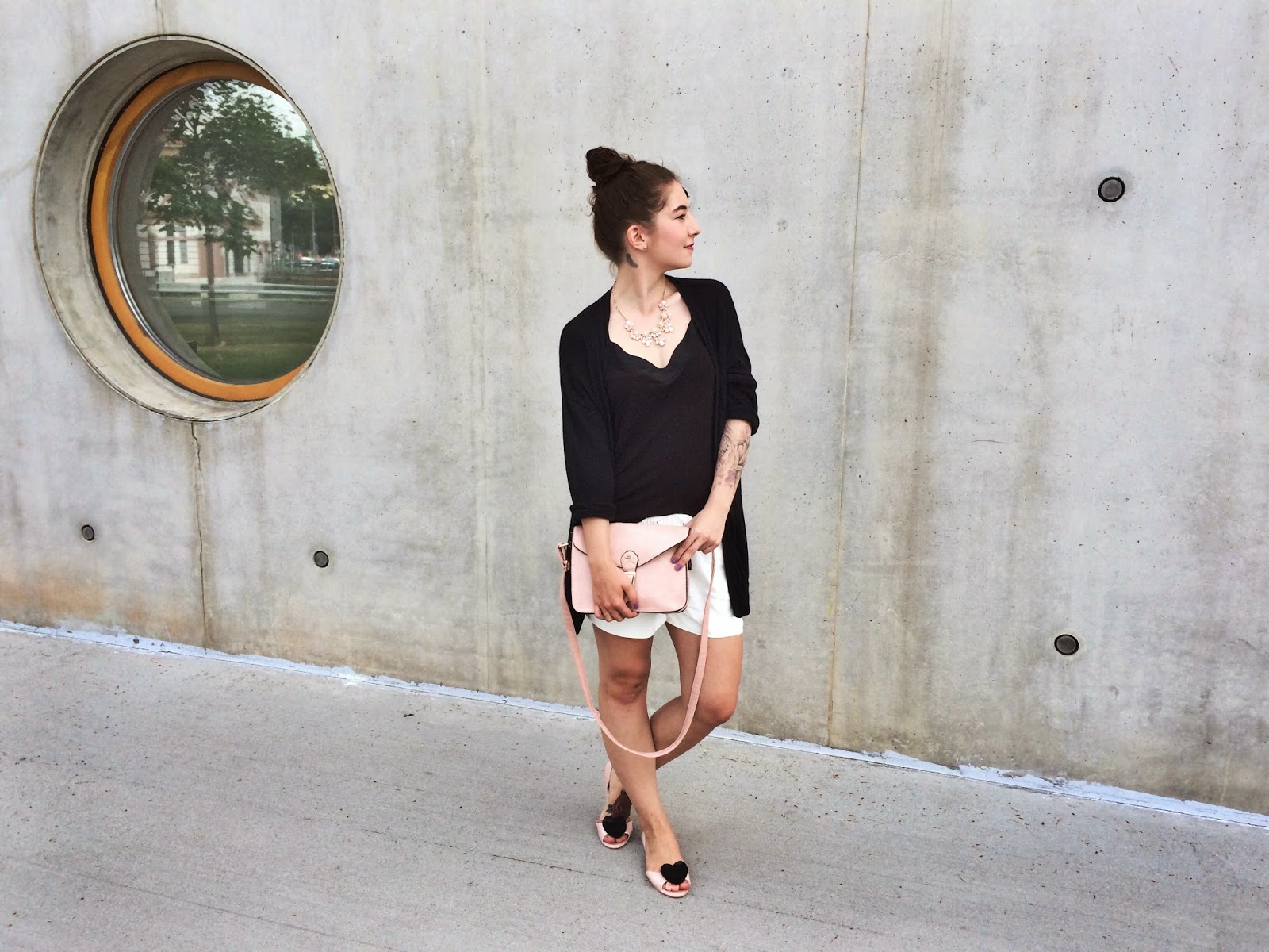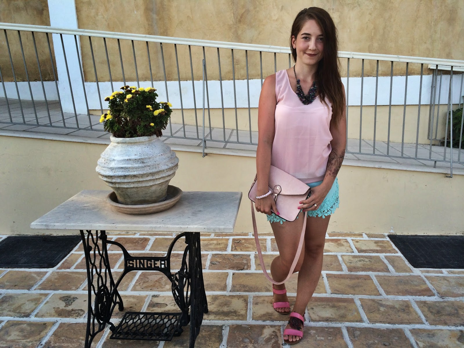 Top – NEW YORKER / shorts – H&M / bag, shoes – CROP / necklaces – Lindex, Primark