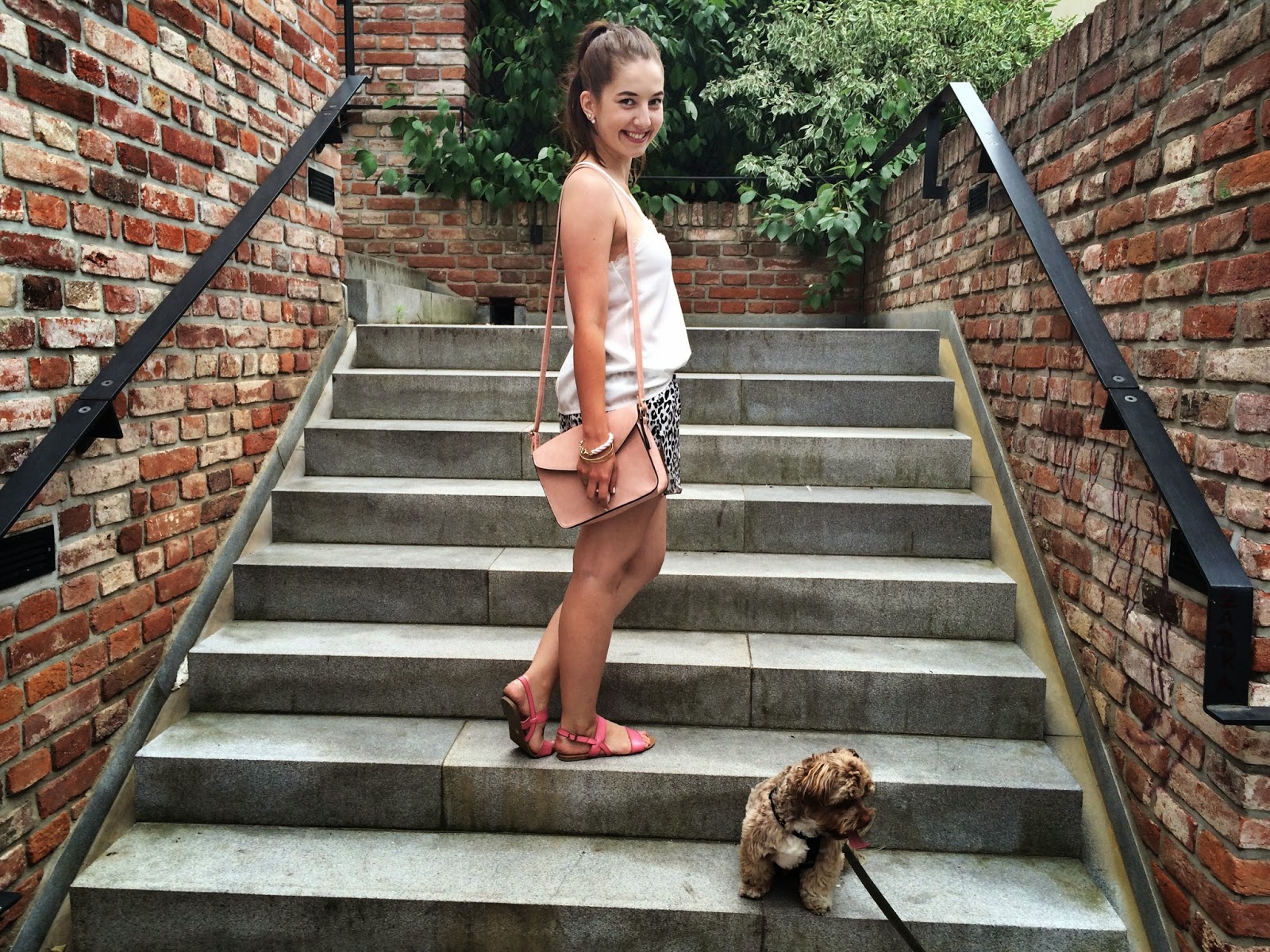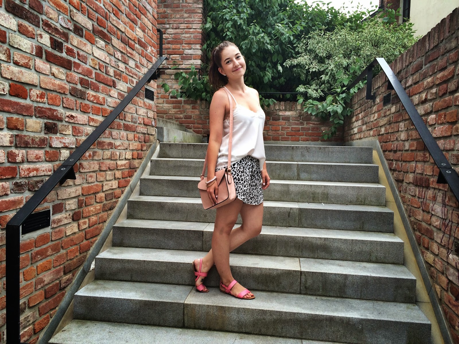 Jeden z nejletnějších outfitů, jaký jste tu zatím mohli vidět, řekla bych. A nejpyžamovější. Tenhle trend saténových věcí se mi strašně líbím a baví mě, že si v tom opravdu připadám jako v pyžamku. Top z New Yorkeru má nespočet blogerek a vědí proč, je super, stačí jen najít vhodnou podprsenku! Po dlouhé době na mě také vidíte culík, který mám stejně jen kvůli tomu, že děsně foukalo a jinak to nešlo, lépe se prostě cítím s rozpuštěnými vlasy. Na fotkách opět vidíte i Andyho, nejspíš s připlete ke každému focení, takže uvidíte, kolik outfitů jsem nafotila za těch pár dní, co jsem ho měla na starost 24/7. Ne, že by mi to vadilo, fotit s ním je sranda a i když ho uvážu dál, tak se stejně přiběhne vyfotit. Taky musím poděkovat za fotky mé milé Káje, která poprvé zafungovala jako fotograf a řekla bych, že to dopadlo víc než dobře, za což jsem moc vděčná, vždy se hodí milý fotograf v záloze!