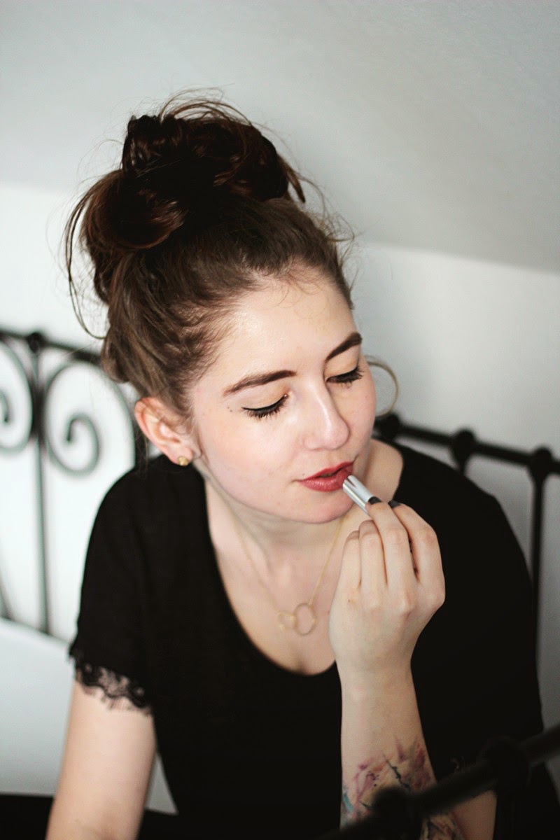 Odstín vhodný na každodenní a celodenní nošení je nepochybně TAWNY ROSE. S tímto odstínem jsem si sžila okamžitě. Je to taková nude-růžovo-fialová a mým rtům sedne perfektně. Mohu ji mít na sobě klidně každý den, s ničím se nebude tlouct a pokud nejste zvyklé na udivené pohledy lidí (které jsou při výrazné rtěnce víc než obvyklé!), tady se jich bát rozhodně nemusíte. Spíš to podle mě vypadá jako že máte přirozeně velmi zajímavou barvu rtů.