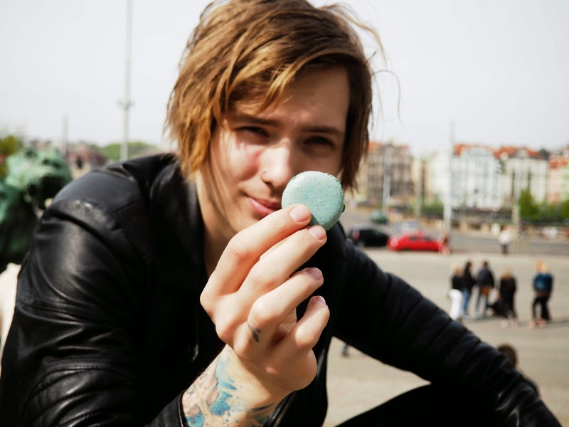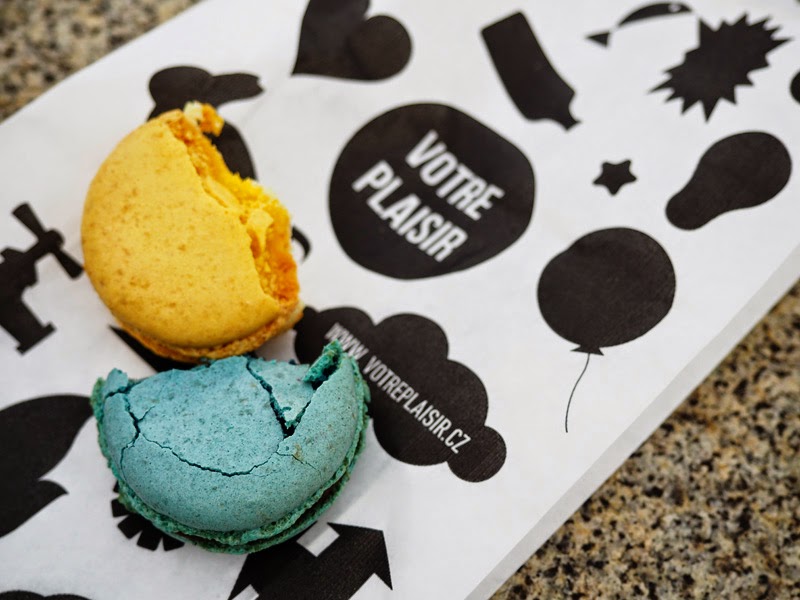 Náhradní variantou byl jakási minitrh na náměstí nad Náplavkou, kde byl teda dortíčkovej stánek jen jeden, ale aspoň stál za to. Dali jsme si skvělej quiche, passion fruit makronku a levandulovou makronku, která to teda u mě vyhrála na plný čáře. Vyšplhali jsme si na sochu a tam si ty dobroty snědli a nejspíš jsme tím rozčílili okolní rodiče, protože všechny děti chtěly samozřejmě rázem taky nahoru a my měli o zábavu hned postaráno 😀
