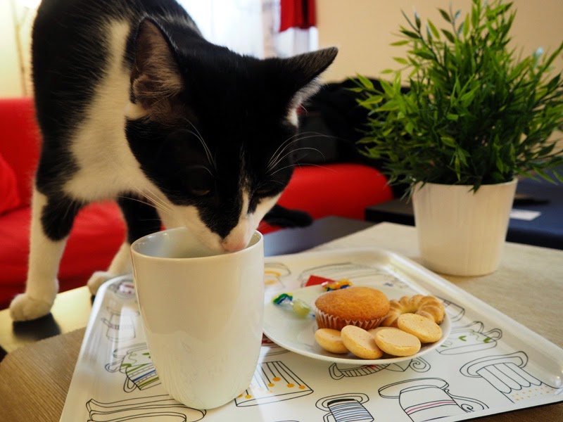 Cestou do centra jsme uplně náhodou narazili na Cat Café, o kterém jsem už nekolikrát četla a slyšela, ale v rámci plánování výletu na to bůhvíproč zapomněla. O to větší byla moje radost a hned jsme tam museli jít. Strašně se nám líbil celej ten koncept, je to vlastně jakejsi byt, kam si zazvoníte, vezmete si bačkorky a můžete si tam dělat co chcete. Najdete tam několik místností, která má každá nějakou funkci. Jedna je čistě kočičí, další promítací sál pro dětské návštevníky, hlavní místnost s křesílkama pro hosty a taky třeba xbox. V kuchyňce si můžete dát čaj, kafe, čokoládu, muffiny a další drobný občerstvení (ale nečekejte nic závratnýho!) a platíte vlastně jen za čas co tam jste a to 80,-/hod. Koček je tam asi 6, všechny jsou uplně skvělý a chvíli po tom, co se tam uvelebíte k Vám začnou dolézat, chtějí se mazlit a hrát si. Některý to hraní berou až moc vážně, takže jsem dost pokousaná a poškrábaná, ale fakt jsem si to užila a hezky jsme si tam odpočinuli. Akorát Darek si pak uvědomil, že má alergii, když mu začalo být špatně, tak jsme museli pokračovat v cestě dál.