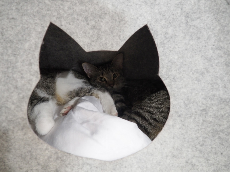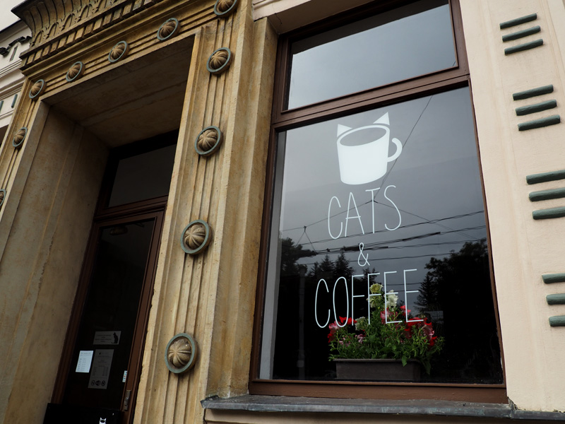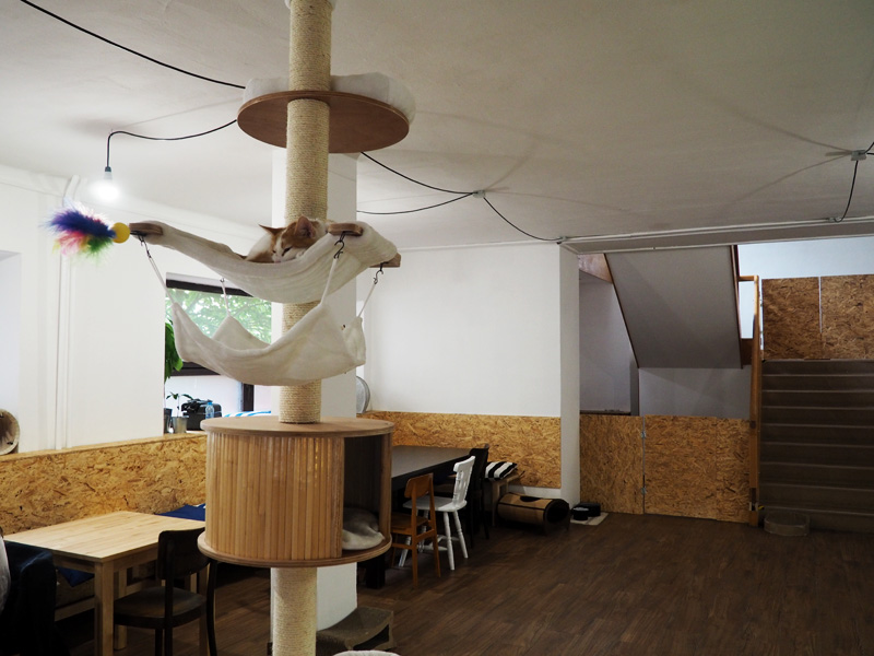 Jak z názvu vyplývá, kavárnu obývá několik roztomilých kočiček a na facebookových stránkách kavárna informovala, že chystají i několik koťátek! Kočičky jsou společenské, nechají se hladit a značně si to užívají. Když nás bylo v kavárně pár, procházely se tam, chodily si pro pohlazení a nechaly se fotit, když se pak zaplnilo i poslední místo k sezení, většina z nich zalezla do různých domečků, co mají k dispozici a jen sledovala ruch z povzdálí.