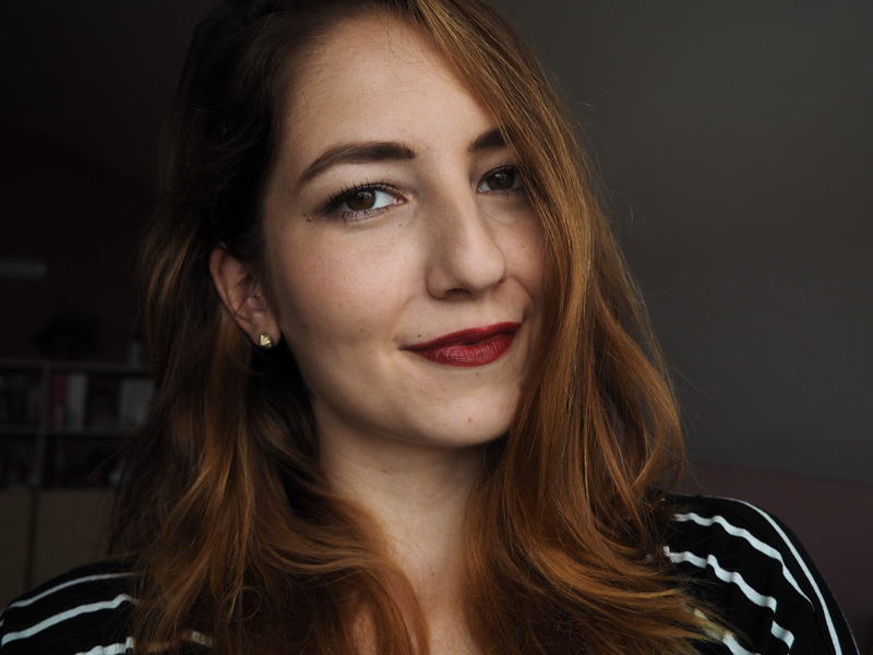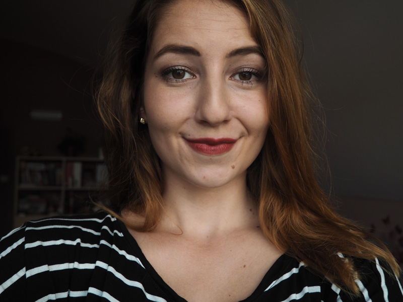 Další novinkou je sytě červená Inglot, kterou jsem dostala od Léni během našeho focení kosmetickýho článku (TADY) a která je teda jedna z nejvýraznějších co mám. Na selfíčku mám Lip Butter od Astor, odstín Ellegant Nude (027) z matný edice. Je to rtěnka, co jsem si koupila hned po státnicích a asi ji s tím budu mít navždy spojenou 😀 barva se mi strašně líbí, bohužel jsem se opět nepoučila s vlastnostmi matných rtěnek a prostě mi ty rty vysušuje. To mě ale u téhle neodradí a s labellem ji vesele používám dál.