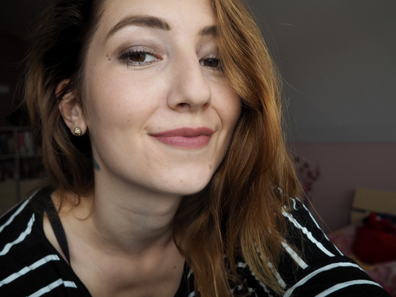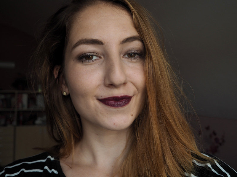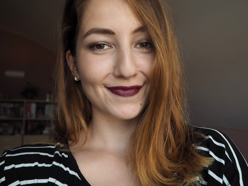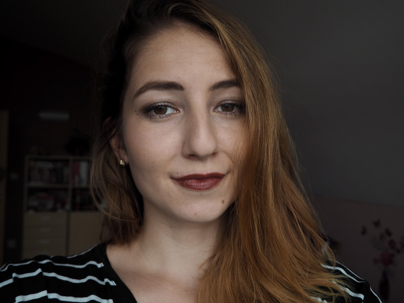 Gimme more (44) je perfektní tmavě hnědo-červená barva, která fakt hodně poutá pozornost. Mám pocit, že takhle na tom selfíčku to ani tolik nevynikne, ale připomeňte si kdyžtak TENHLE outfit, kde ji mám na puse.