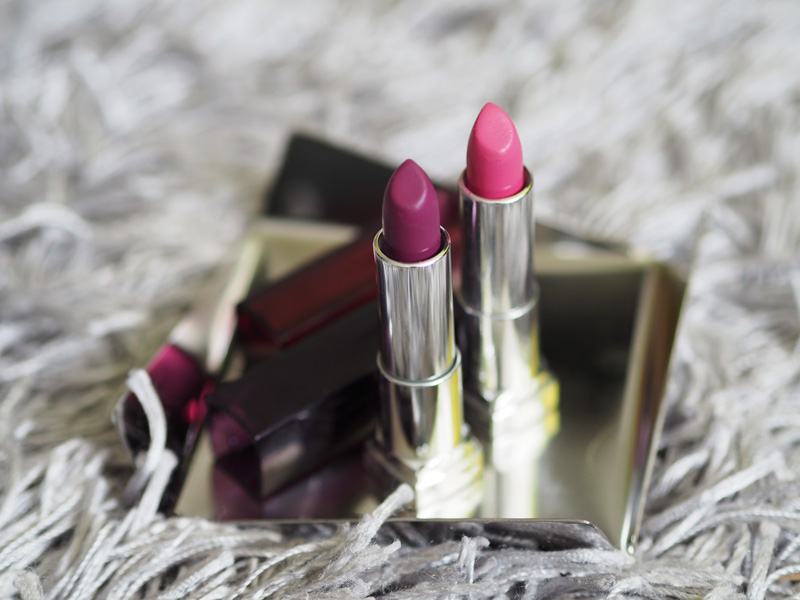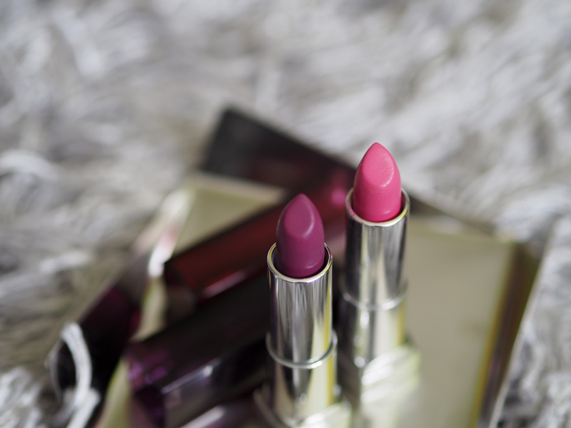 Další dvě od Maybelinne jsou právě ne-moc-moje odstíny a v podstatě je nenosím. Byl to spíš takvý unáhlený kup před létem a nějak jsem s nimi nesžila. Ta fialovější (Plum Passion 365) je až moc lesklá v kombinaci s tak výraznou barvou a o růžové (odstín Plushest Pink 185) už jsem tu mluvila několikrát, sice mi ladí k tetovačkám, ale necítím se v ní.