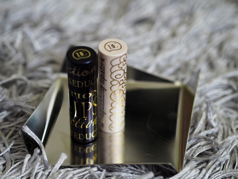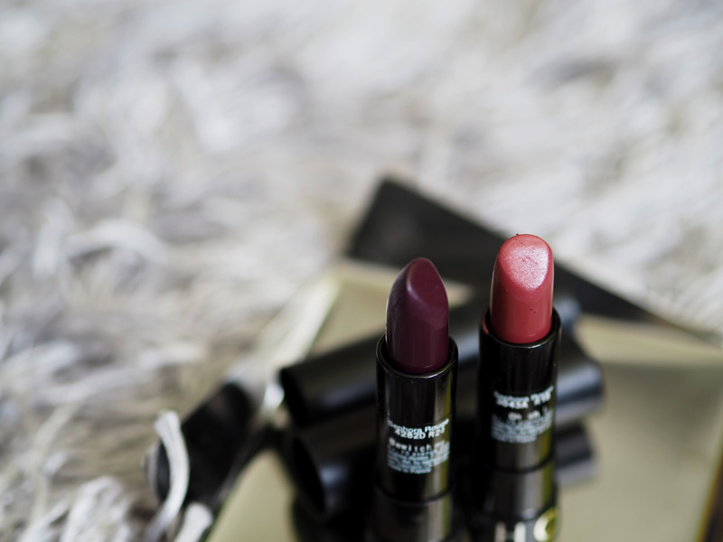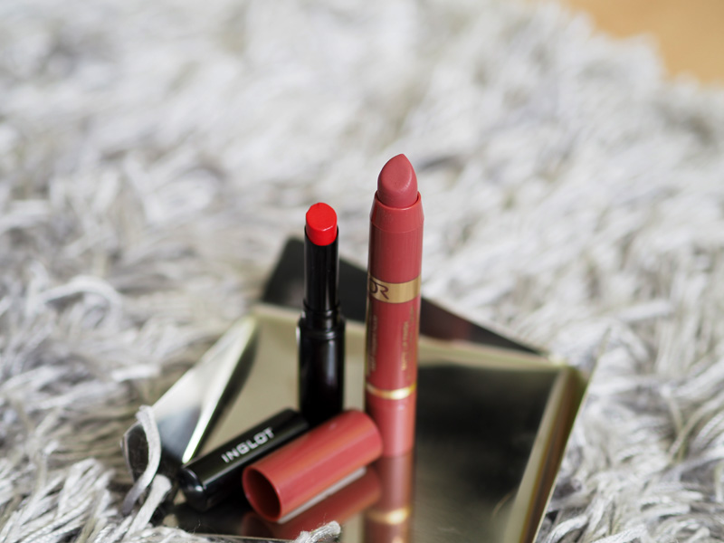Začala bych rtěnkama Dermacol, protože mají nádherné obaly (to jsou priority, panečku!) a hlavně jsem si je teď fakt moc oblíbila! Souhlasím s názorem, že jsou to jedny z nejlepších rtěnek, co se dají v drogeriích sehnat! Barvy jsou krásně pigmentované, vydrží i přes oběd (!!) a příjemně hydratují. Nejsou ani lesklé ani matné a pro mě naprosto ideální a příjemné. Jediné negativum je za mě výběr odstínů, přijdou mi všechny na jedno brdo, proto mi bohatě stačí tyto dva. Jejich cena je 149,-