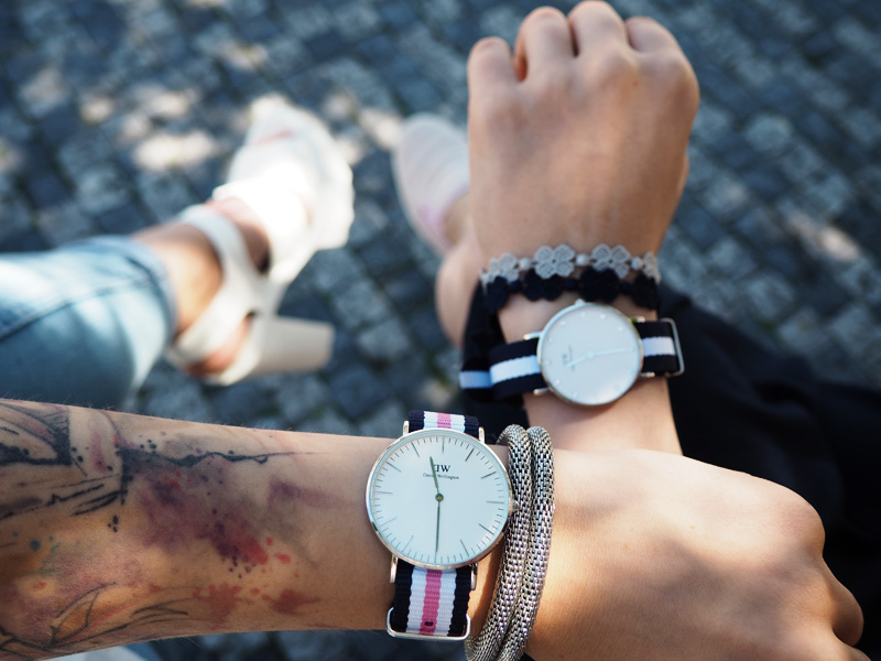 S Barčou jsem fakt typický blogerský holky a jestli nás někdy někdo ve městě pozoruje, tak si musí ťukat na hlavu, protože někdy fakt vypadáme jak totální magorky. Třeba když se snažíme si vyfotit společně hodinky tak, aby tam byly vidět i boty 😀
