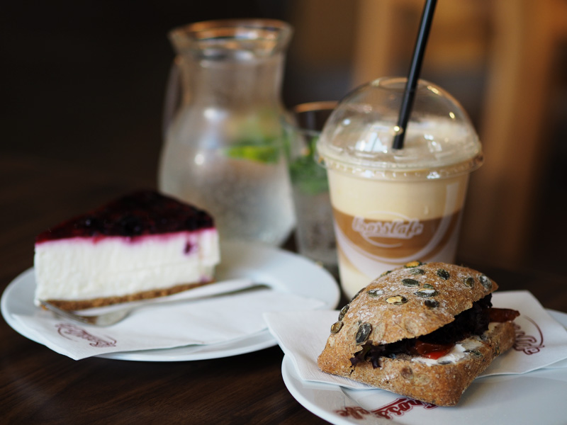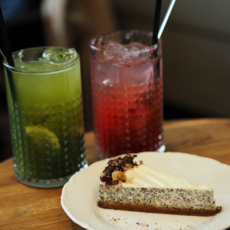 Moje klasický Crosscafe menu – dýňová kostka a sojové frappé. Tentokrát jsem našla jedinou chybičku na týhle kavárně – Terka si dala mojito limonádu do půllitru a zaplatila za to šedesát korun, což fakt upřímně nechápu, když je to jen sodovka s plátkem limetky a pár lístkama máty.