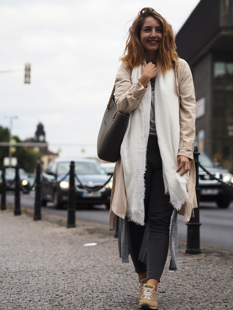 Tady jsem zkombinovala zase svý nejoblíbenější barevný kombo – šedou a béžovou. Hlavně teda díky tomu, že tyhle kalhoty z Topshopu jsou moje nejoblíbenější kalhoty a New Balancky zas nejoblíbenější boty. A Obag nejoblíbenější taška. A trench nejoblíbenější kabát. A už to je trapný :D. Takže končím a jsem zvědavá, co na tohle vrstvení a kombinaci různých délek řeknete, mě to strašně baví, i když někdo na to kouká dost divně. Tak schválně, v jaký partě jste vy?