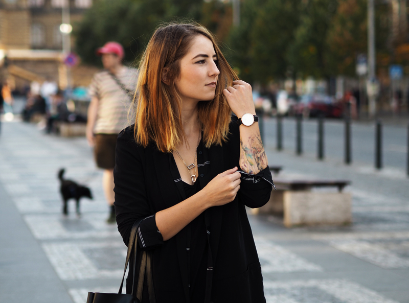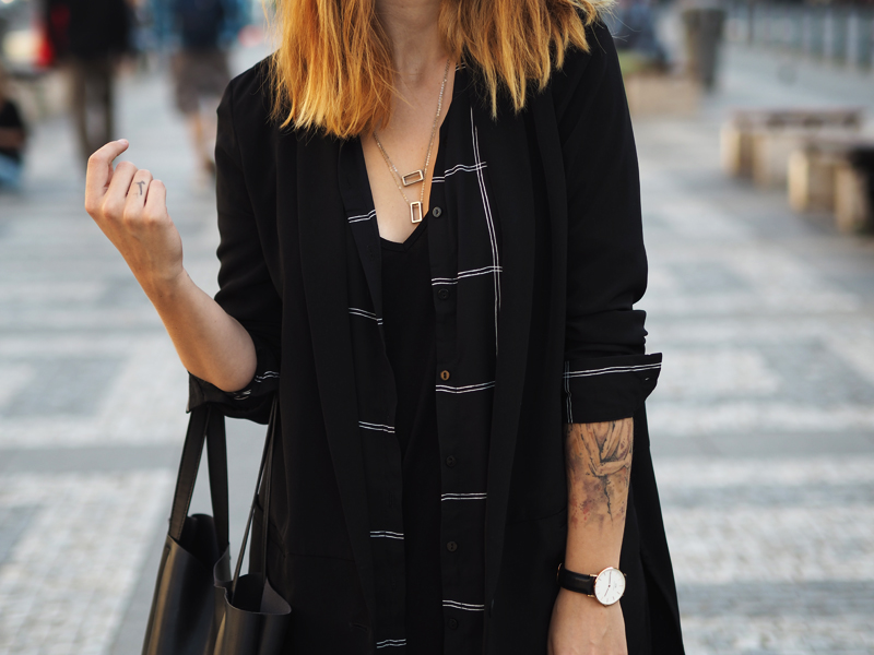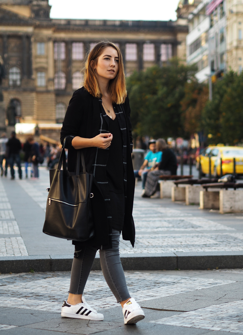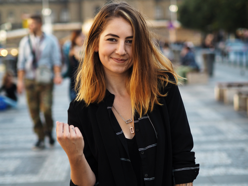 Nějak jsme se s Nikčou naučily fotit přímo v centru všeho dění. Když jsme vyrážely na jednu z dalších blogerských akcí, nestíhaly jsme, ale potřebovaly jsme nafotit outfity, postavily jsme se doprostřed Václaváku a prostě fotily tam. Je sranda pozorovat reakce okolí a nakonec je úplně jedno, jestli stojíte na místě, kde se pořád valí davy lidí anebo někde, kde jen tak občas někdo projde, stejně se to neobejde bez udivených a pobavených pohledů.