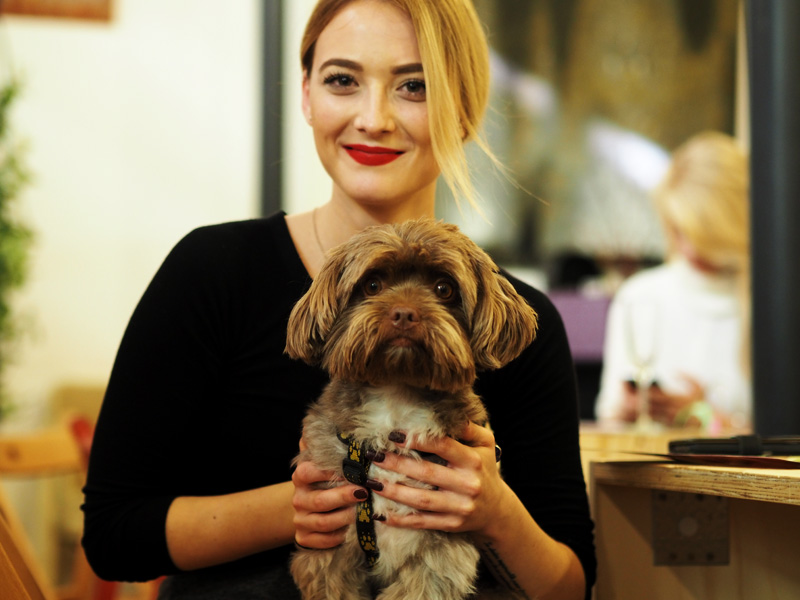 Kosmetickej workshop s parfumerií Elnino. Mám vždycky pocit, že ho tady někdo vyměnil, protože na nikoho neštěká a nechá se hladit. NECHÁPU, v Hradci div nezakousne každýho, kdo se na něj jen podívá. Takhle jsme byli všude středem pozornosti – já si to až tak moc neužívala, když jsem byla celá špinavá z toho, jak ho každou chvíli zvědám a ňuňám, ale co už.