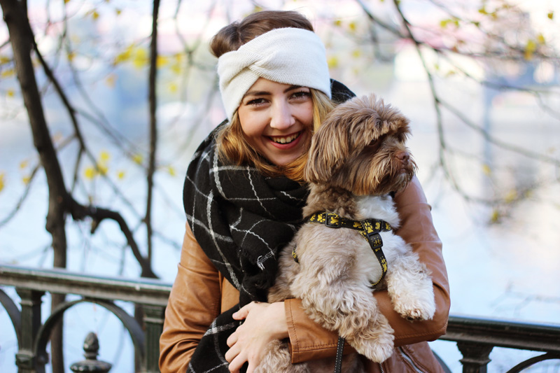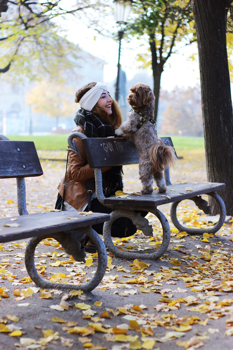 Krásně středeční dopoledne! Dnešní článek a fotky jsou zase tak trochu speciální. Minulý týden, co jsem měla v Praze Andyho, jsem se totiž konečně sešla s Terkou Marešovou, která nám nafotila tyhle nádherný společný fotky. Hrozně mě baví, jak je na nich vidět, jaká dvojka s Andym jsme a jak na něj koukám. Jsem evidentně strašně průhledná a mám dojem, že se to netýká jen mýho vztahu se psem, haha. Ale co, asi ze mě nikdy nebude někdo, kdo se umí nad všechno povznést, být nad věcí a nemotat do všeho hned city. S touhle mojí chlupatou láskou mám aspoň navždycky jistotu, že je to nekonečně hluboký a pevný pouto, miluju každou chvilku s ním, přestože se polovinu času vztekám, že na všechny štěká nebo že ho musím pořád nosit a bolej mě ruce. Pak si ke mě ale skočí do postele a já přestanu dělat cokoliv zrovna dělám a jen se k němu tulím a vdechuju jeho vůni – a ano, opravdu píšu o svým psovi a ne o příteli :D. No a když náhodou něco provede a já jsem potom na něj kvůli tomu vzteklá a zlá, tak se mu po pár minutách přijdu ještě omluvit, když vidím, jak na mě uraženě zahlíží. A takhle my to máme. Předpokládám, že vy, kdo máte taky psa, jste na tom uplně stejně, protože prostě psí lásky. žejo.