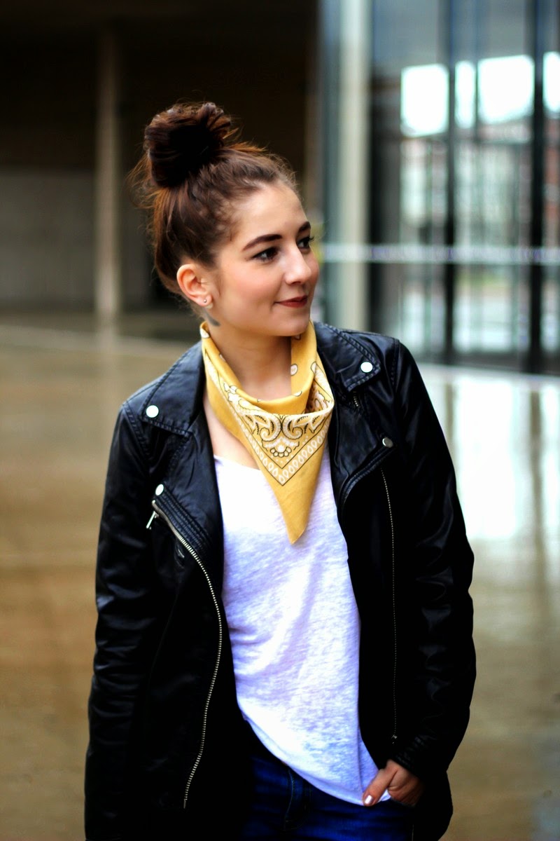 No, přejděme raději k outfitu... v sobotu byl jakýsi jarní den uprostřed zimy. Nechápu, jak se to stalo, ale rozhodně bych to brala častěji. Měla jsem tak možnost vyvětrat svůj nový křivák, který jsem si pořídila ve slevách. Vzala jsem si přes něj pro jistotu ještě kabát, ale nakonec jsem ho polovinu cesty nesla v ruce, protože bylo fakt teplo. V plátěné tašce od Zootu nosím kupu knih, za které jsem už v knihovně dlužila milion peněz a prim v oblasti doplňků tentokrát hraje bandana šátek, který mě neskutečně baví a nejradši bych ho teď cpala všude! Co na tenhle ne-tak-uplně-všední trend říkáte vy? Vytáhnete na jaře šátky po babičkách, pořídíte si nějaký vlastní nebo to půjde úplně mimo Vás? Na mně jich rozhodně uvidíte spoustu a to jak vintage, tak i těch, co pořídím nově!