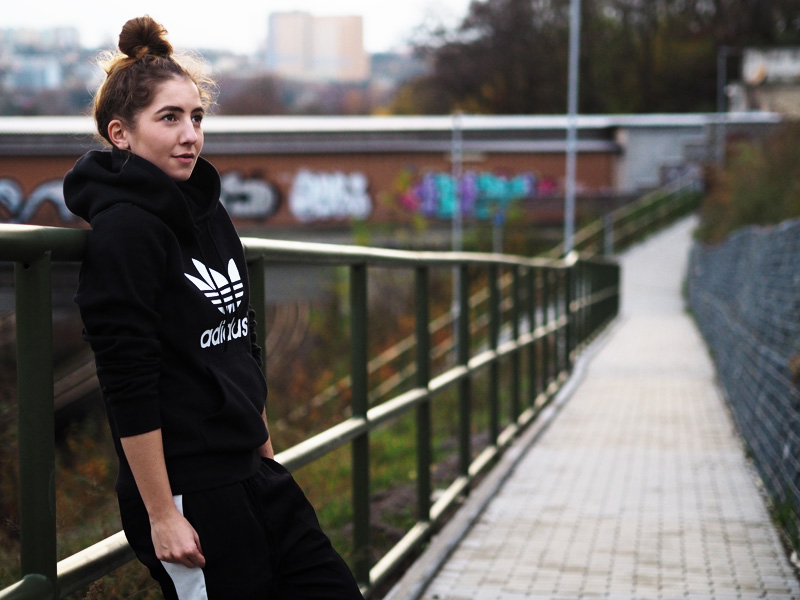 Černočerný outfity nosím minimálně, to jste si asi všimli. Prostě se v nich necítím, přestože vy mi většinou píšete, že to právě vypadá super a všechno – no nevim. Občas je na tu černou ale nálada, to zas ne že ne. Třeba tady v tenhle den, kdy mě nečekaly uplně příjemný povinnosti a setkání. A na to se černá přece hodí, žejo. A taky jsem si nutně chtěla vzít novej klobouk a dát si po dlouhý době šaty. Momentálně se cítím stejně nejlíp doma v dortíčkovejch teplákách anebo týhle Adidas mikče, co jsem Vám ukazovala na instagramu a ze sebe ji od tý doby sundávám skoro jen na noc. Domča a sportovní věci, divný. A to ještě nevíte ani to, že od tohoto týdne se vrhám do pravidelného cvičení, konečně jsem si vybrala i fitko (TOHLE) a jsem na sebe fakt zvědavá, haha.