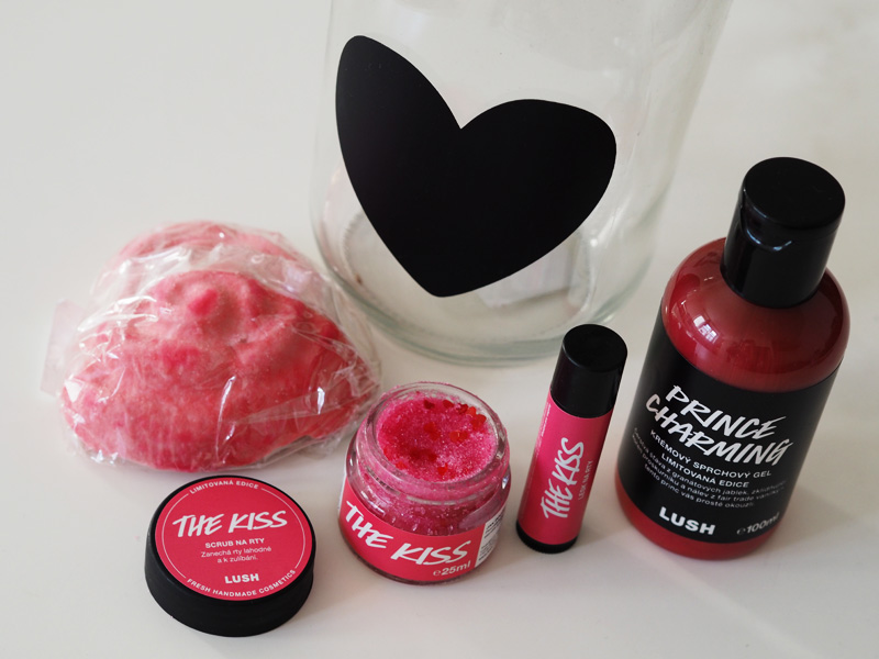 No a tohle je valentýnská topka, kterou jsem si odnesla domů. Oželela jsem teda bombu do koupele, jelikož v Praze mám jen sprchu a místo toho si vybrala další limitku sprchovýho gelu. Určitě si pamatujete, že jsem ujetá na ten halloweenskej, co je tmavě zelej a voní jako pepř a vanilka (což normálně uplně nesnáším a na tomhle jsem přitom závislá, nechápu!) a tenhle Princ Krasoň je teda taky paráda. Grep, granátový jablko, vanilka a marshmallown.
