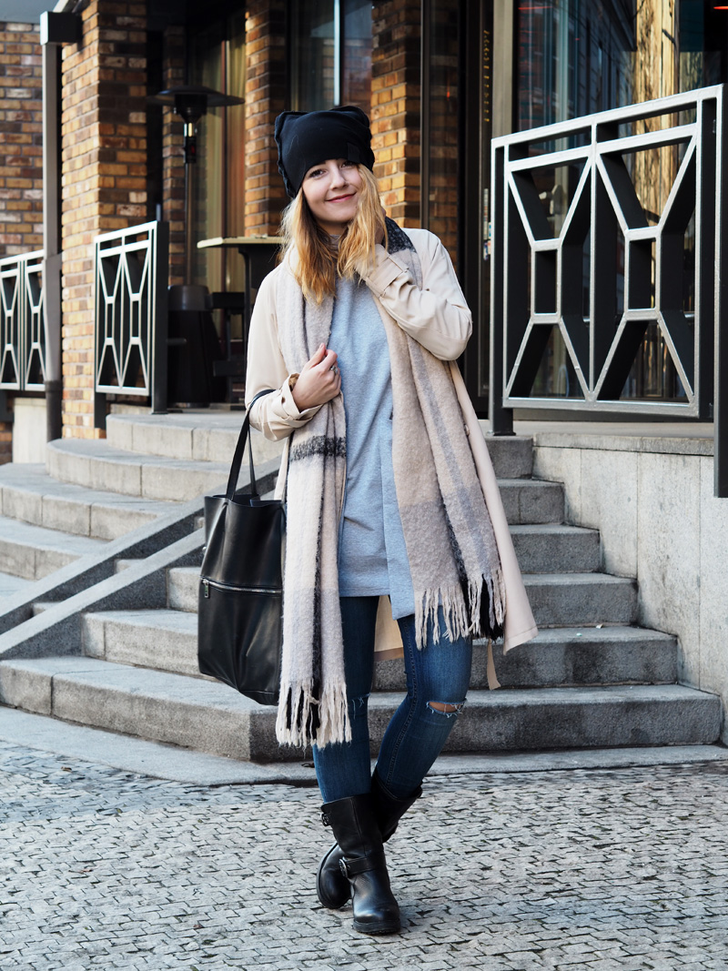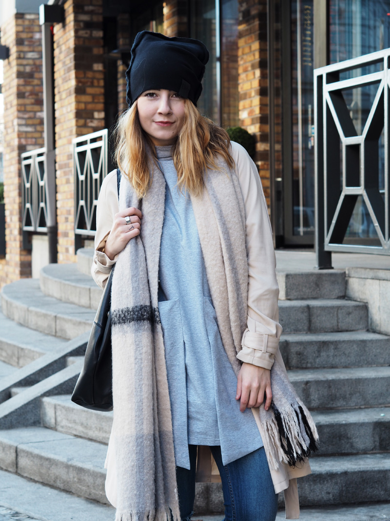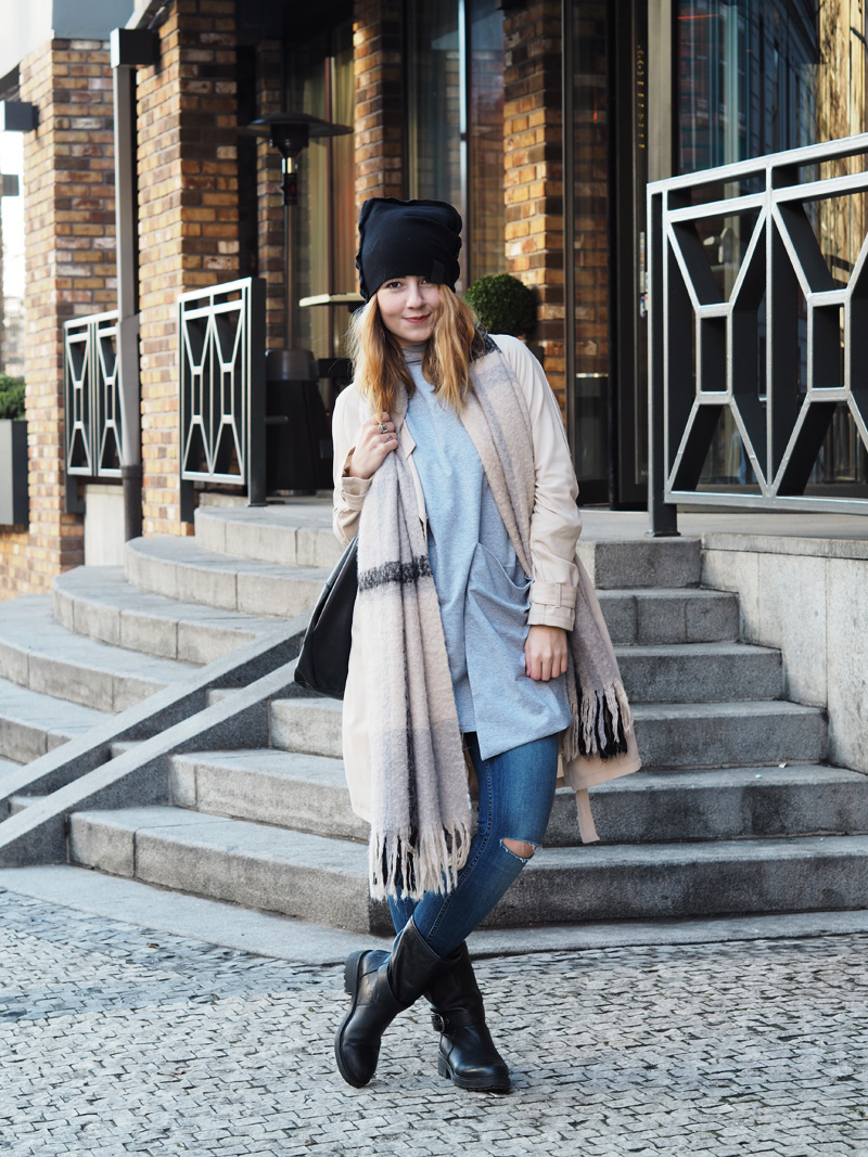 Čauky! Tak se hlásím už zase z Prahy, pěkně unavená, ale spokojená a vedle sebe mám dnes dokonce dvě lásky (přítele a psíčka, co mám na celý týden na hlídání). No a než dám do kupy fotky z plesů, včetně těch slíbených flashbackových, hodím Vám sem jeden outfit, co jsem měla na sobě někdy minulý týden. Tak moc jsem si chtěla oblíknout tyhle nový šaty, přestože jsem k nim neměla žádnou vhodnou vrchní vrstvu, že jsem si pod ně prostě vzala vlněný termo triko a na ně už hodila jen trench, zabalila se do šály a přežila jsem úplně v klídku. Nejdůležitější je totiž jak známo teplo na nohy a na hlavu – a to plnim dokonale! U mě k tomu je teda potřeba ještě teplo na krk. Poprvé taky můžete vidět moje světlejší vlasy, který budou za pár dní světlejší zase o něco víc a už to skoro bude ten cílovej odstín, jupijou! Jste stejně zvědaví jako já?