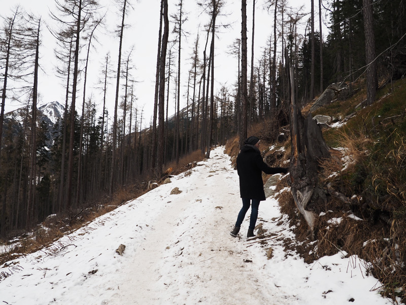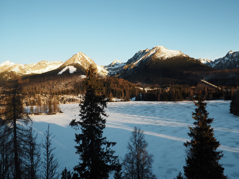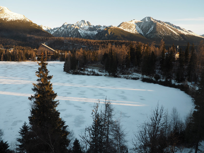 Než jsme se najedli a vrátili zpátky na pokoj, pleso se zaplnilo výletníkama na běžkách, bruslích či jen v pořádných zimních botách. Takže už jsme se nemuseli bát, jestli je to fakt pořádně zamrzlý a začali jsme se tam vypravovat taky.