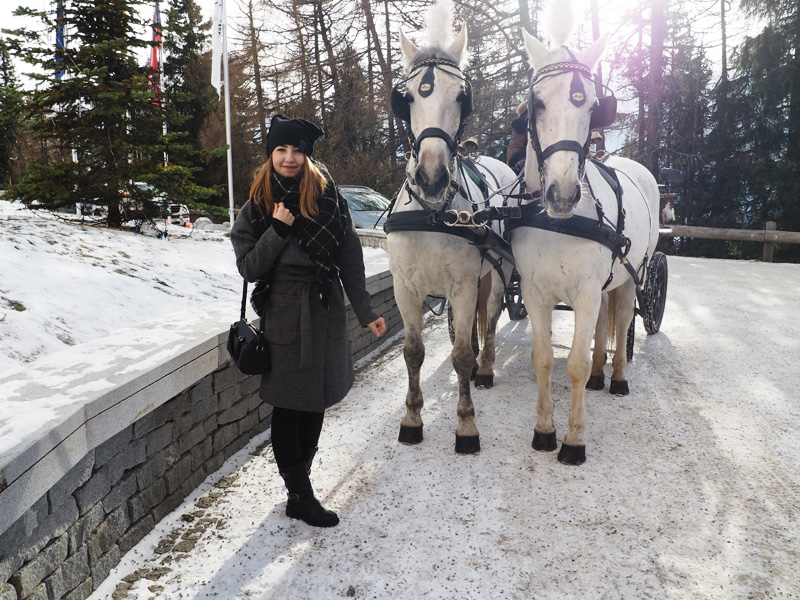 Před hotelem nás nabralo koňské spřežení (tihle dva naši zrovna hráli v pohádce Sedmero Krkavců, héč héč, hladila jsem si koňský celebritky!) a krásně jsme se projeli kolem plesa a nasbírali tipy na různý tůry v okolí.