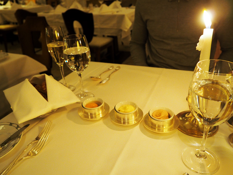 Ale přece jste si nemysleli, že bych zrovna já zaspala nějaký jídlo. Nenene. Tak nás čekala další skvostná véča. na výběr byly vždycky dvě varianty každýho chodu a zatímco první večer jsme zvolili oba to stejný, tentokrát jsme vybrali uplně opačně. A začali jsme výborným domácím ještě-teplým pečivem.