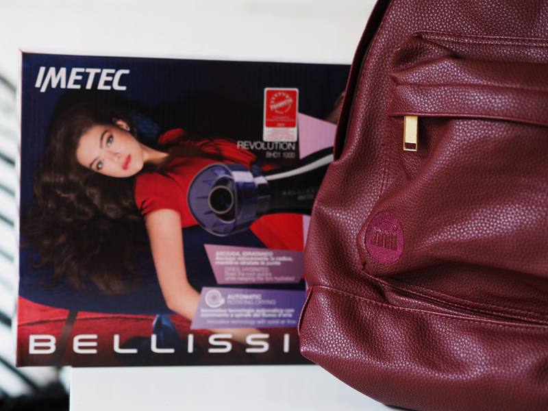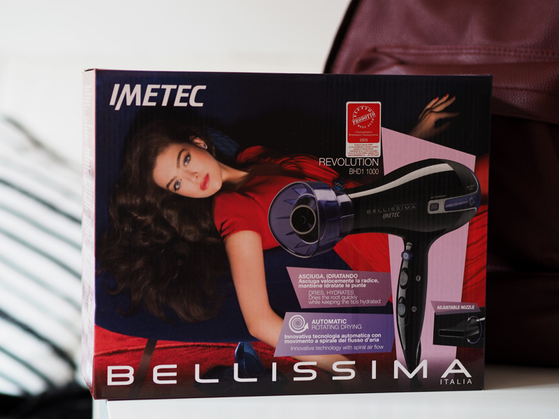 - První věcí je fén značky Bellissima, který má automatický rotační difuzér, což v překladu znamená, že při sušení vlasů nemusíte fénem kejklat v ruce, aby se vlasy pořádně prosušily, ale že můžete být prostě v klidu a nehybný a fén to udělá za Vás – je to nezvyk, věřte mi, ale fakt super vychytávka!