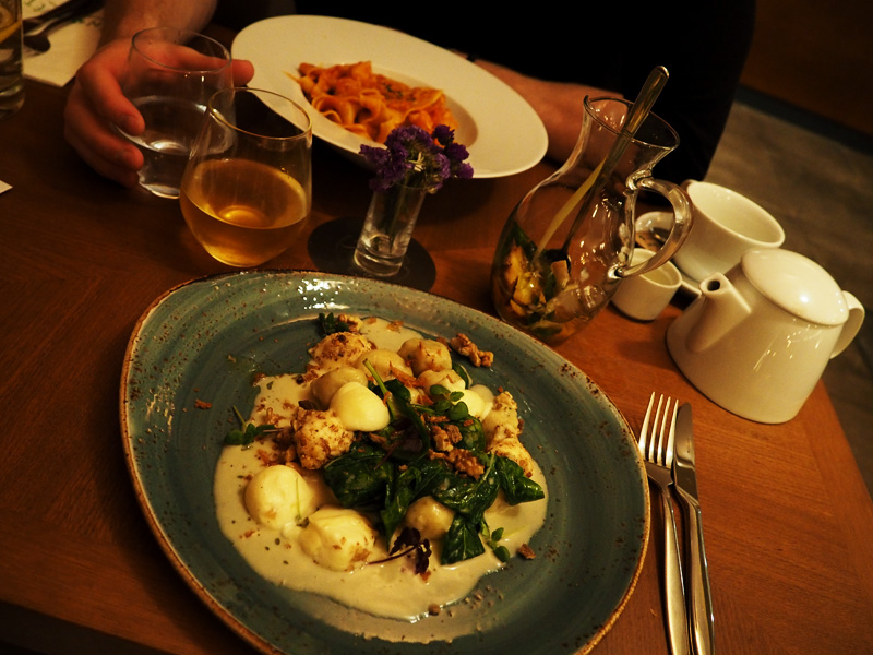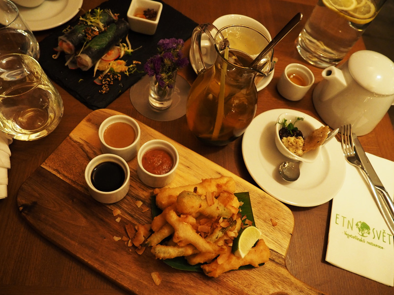 Pro předštědrovečerní večeři jsme zvolili restauraci Etnosvět, kde dělají výborný vegetariánský jídla a hezčí interiér jsem snad neviděla. Navíc je tam plno cizinců, takže já jsem se tam cítila jako dovče. Jako předkrm (hore na fotce) jsem si dala tempurovanou zeleninu a tofu a přítel jarní závitky. Jako hlavní chod (dole) jsem já zvolila bryndzové knedlíčky a přítel těstoviny s rajčatama a parmezánem. Bylo to fakt MEGA dobrý!