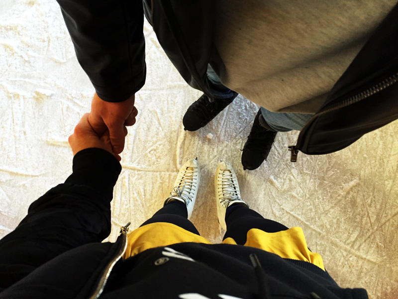 No a taky jsme se konečně oba uzdravili a mohli vyrazit na bruslení! Hohohoooo! Těšila jsem se na to snad měsíc a asi jsme si nemohli vybrat víc narvanej datum a čas, protože občas se nedalo na ledě ani hnout 😀 naštěstí jsme šikovní a umíme to, takže jsme z toho měli pohyblivej lidskej slalom a užili jsme si to i tak. Moje krasobruslařský léta mi občas strašně chyběj, takže si je aspoň touhle cestou připomínám a nejradši bych z toho udělala tradici – cooo, zlato?!