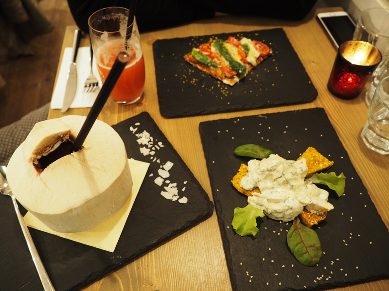 Na oslavu zakončení dalšího zkouškového týdne jsme zašli do My Raw Café. Tam jsem si to oblíbila už s mamkou a mohla bych tam chodit pořád. To se ale samozřejmě nelíbí mojí peněžence, žejo. Tentokrát jsem měla naštěstí díky aplikaci Restu slevu – dělám si přes ní rezervačky v restauracích a následně píšu hodnocení, za to dostávám kredity a ty pak můžu využít formou slevovýho voucheru, znáte to vůbec? No každopádně jsme si to moc užili, já jsem si dala smoothie v mladým kokosu a pak jsme zkusili Gourmet menu, ve kterým jsme měli hráškovou polívku, pizzu, bruschettu a zákusek.