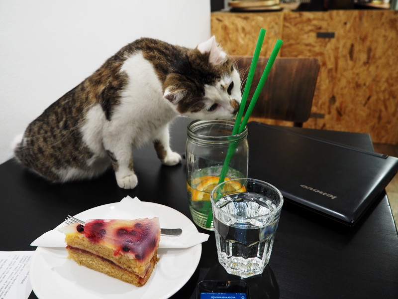 A následný večer bez psa v kočičí kavárně. Nejsem teď schopná doma udělat vůbec žádnou práci a to, na co můžu v Praze využít Hub, tady využívám právě Cats&Coffee. Tam o společnost taky není nouzi a já si to užívám.