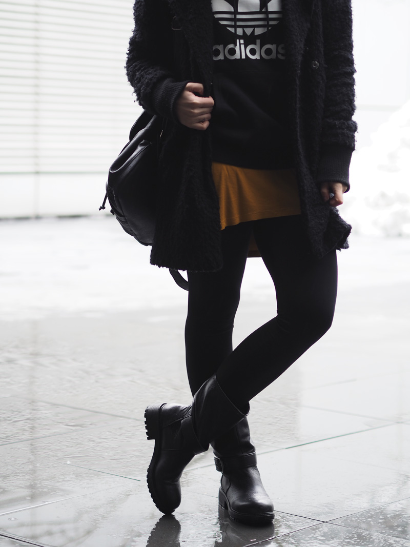 Dnes se hlásím s jedním starším outfitem, kterej jsem jako správná blogerka nosila v kuse skoro týden. Mimo jiné jsem v něm i jela s přítelem do Tater, protože i na cestování je uplně ideální. Když jsem si tuhle Adidas Originals mikinu objednávala, byla jsem z toho uplně vedle, protože jsem ji nemohla sehnat několik měsíců, ale když mi pak přišla, najednou jsem nevěděla, jestli ji budu nosit a s čím vlastně. Fakt bych teda nečekala, že to bude jeden z mých nejoblíbenějších kusů oblečení a stane se ze mě na nějakou dobu “mikinová Domča”. V tomhle outfitu jsem se cejtila naprosto skvěle, prostě 100% já, což se neděje zrovna u každýho outfitu, kterej dohromady splácám. Kromě mikiny jsem taky blázen do tý čepice (narozdíl od většiny z Vás :D) a koženejch bot z Alda, který jsem pořídila sama sobě jako hodně pozdního Ježíška.