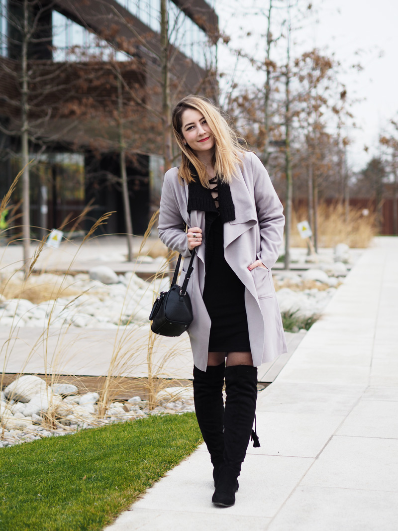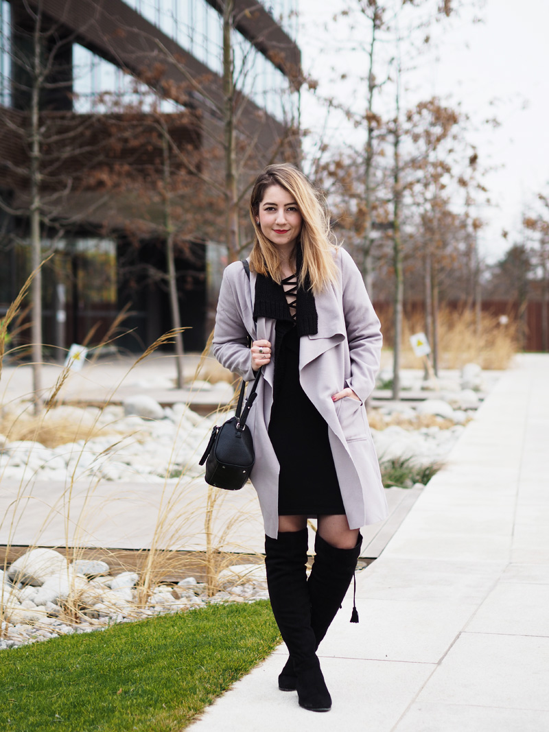 Dnes jsem tady s outfitem, který jsem si brala v týdnu na rande s přítelem. Slovo rande mám hrozně ráda a i když s přítelem bydlíme, stejně chodíme na randíčka. Je přece něco jinýho jít spolu na nákup a válet se doma u filmu a vyrazit do města na procházku nebo třeba na večeři, což byl zrovna tenhle konkrétní příklad. Ne vždycky mám chuť se vymódit, třeba do školy chodím čistě pohodlně, což uplý šaty a kozačky nad kolena zrovna nejsou, že ano 😀. Nicméně kam jinam se vyfiknout než právě na rande? Zajímalo by mě, jak to máte vy, když se svýma drahýma polovičkama bydlíte – chodíte pořád na randíčka nebo už to neřešíte a prostě “jen” jste spolu? Já si tohle hrozně užívám a právě na tyhle naše chvilky se těším nejvíc, vlastně teda nejvíc hned po usínání a vstávání, haha, na to jsem neskutečná – nedokážu třeba usnout rozhádaná, potřebuju mít všechno v klidu, abych se hezky vyspala a ráno vstala s nejlepší náladou.