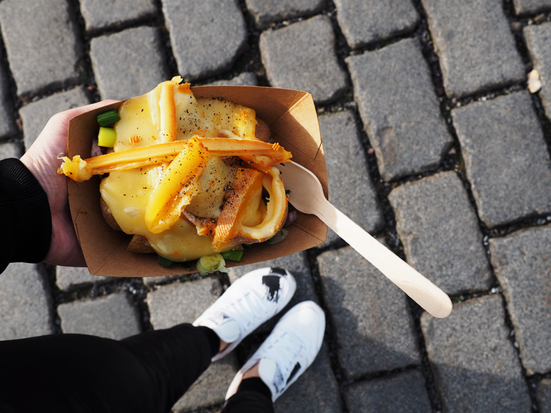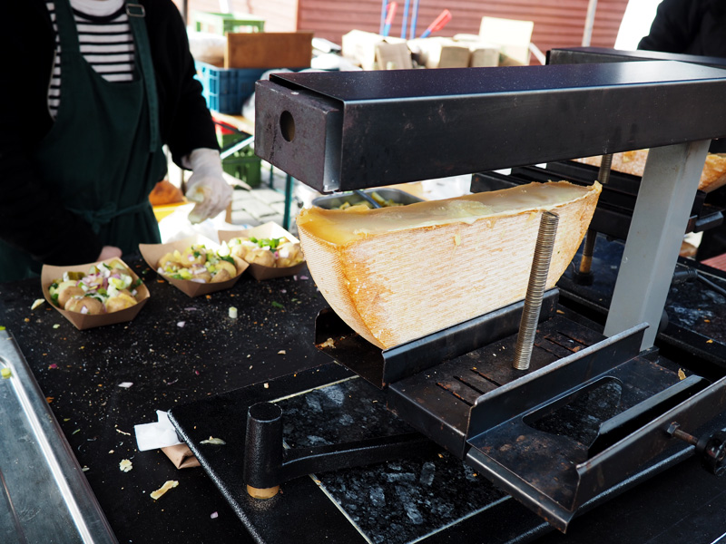 A jako druhý chod jsem si dala brambory přelitý sýrem Raclette, což bylo naprosto dokonalý. Jednu dobu jsem nemlsala nic jinýho než sýry a přesně tuhle moji sýrovou stránku probudila už jen vůně z tohohle stánku. No a taky jsem pochopila, proč se ta fronta hýbe tak pomalu. Na každou porci se ten sýr rozehřívá zvlášť. Jestli ale na tenhle stánek někde narazíte, určitě si tam tu dobu vystůjte, protože to stojí za to. Je to delikatesa a žádný “brambory se sýrem, no”. Viď, zlato :DD