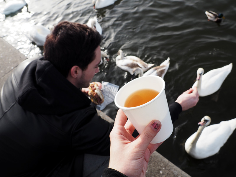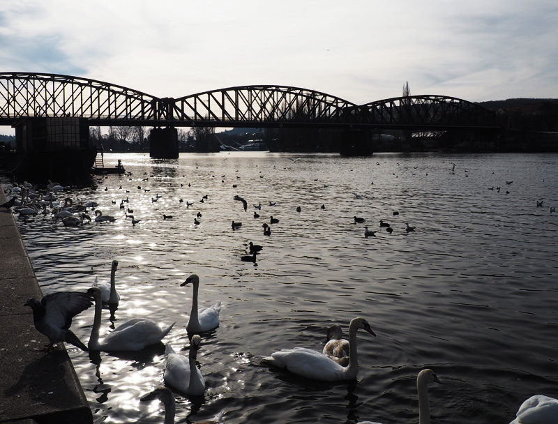 Protože jsem chtěla mít na fotce labutě, musel mi je Kuba přilákat. A tak to bylo veselý. Já mám z nich docela slušnej respekt a sama bych jim rozhodně nic neházela, bála bych se, že vyskočej z vody a ukousnou mi s tím jídlem i prsty!