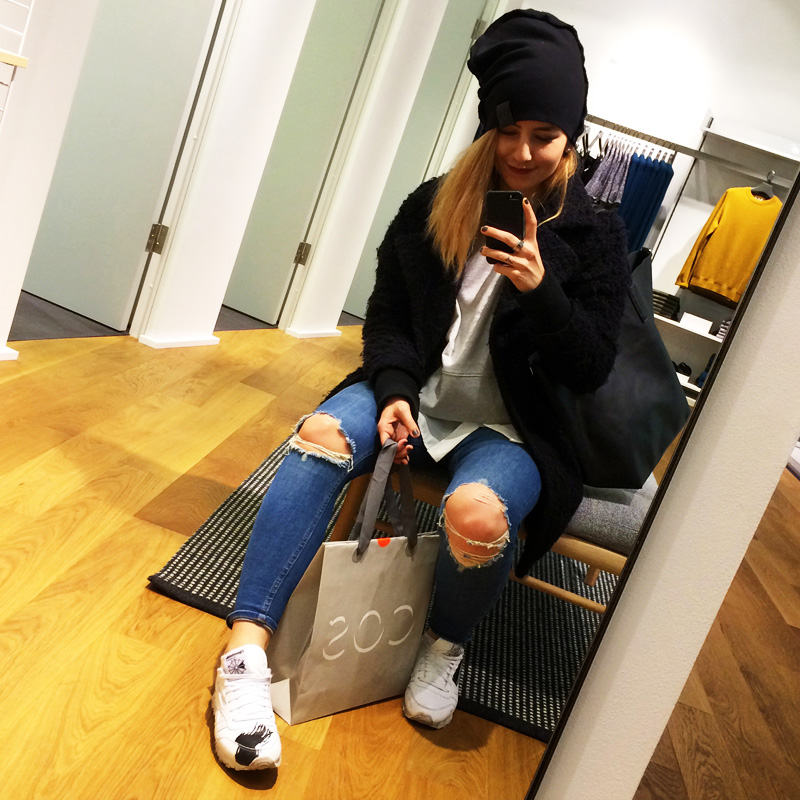 Po tom, co jsem zas u všech viděla fotky z COSu, musela jsem tam konečně zajít i já. To jen abyste věděli, že i člověk, co se v marketingu pohybuje, se nechá ovlivnit naprosto jasnou mediální masáží a v tomhle luxusním obchodě utratí svoje penízky a závidí těm, co s nima mají spolupráci. Ale ty šaty (neboli divně zúženej pytel, jak říká přítel) za to prostě stály, uvidíte na jaře!