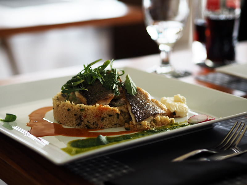 Naši nás vzali na super oběd na golf a já jsem si dala pěkně nefotogenickej burger, takže jsem vyfotila aspoň Kubovu pražmu s kuskusem 😀