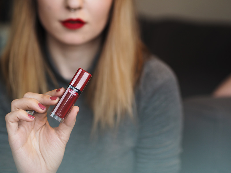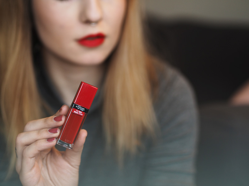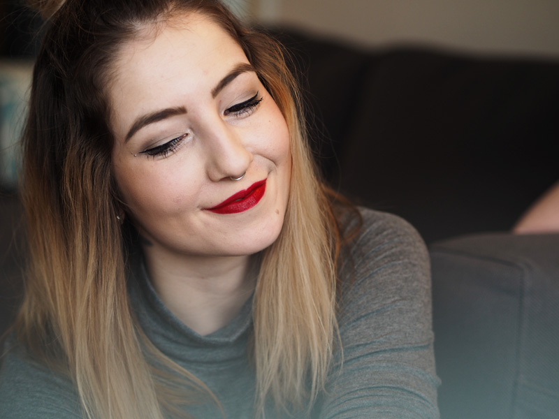 PERSONNE, NE ROUGE je prostě červenočervená, tak výrazná, jak jen může být. Já na tyhle typický červený moc nejsem, nebo jsem spíš možná ještě nenašla tu svojí top. Jsem spíš na ty tmavší červený tóny, i když je pravda, že v létě mě k opálený kůži strašně baví make-up složenej jen z řasenky a právě tahle výrazný rtěnky.