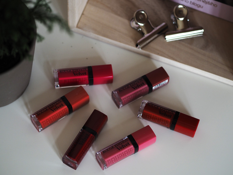 Já jsem měla období, kdy jediná doba bez rtěnky byla ta, kdy jsem spala. Rtěnky miluju, fakt strašně moc, dokážou úžasně pozvednout každej look a já se v nich cítím hrozně dobře. Občas jsou ale STRAŠNĚ nepraktický. Nemůžem v nich normálně jíst a pít, nedá se v nich pusinkovat, ty matný zalejzaj do vrásek a nejsou na rtech zrovna dvakrát pohodlný. To pusinkování ale hraje největší roli, aspoň u mě teda. Proto jsem posledních pár měsíců nekoupila jedinou rtěnku a na ty svý dosavadní se jen ráno občas smutně koukla. Samozřejmě jsem se na tohle téma bavila s holkama a Domča mi doporučila zmatňující lesky/rtěnky od Bourjois. Měla jsem za to, že se tahle značka cenově pohybuje stejně jako třeba rtěnky Mac nebo Clinique, což jsou peníze, který nejsem ochotná investovat do jedný rtěnky, když stejně vím, že mě každej tejden baví jiná barva a proto jsem po nich nikdy nekoukala. Když jsem ale v Outlet aréně objevila přesně tu, co mi Domča doporučila, musela jsem ji vyzkoušet a jednu si rovnou odnést i domů. No a za další dva dny jsem objednávala několik dalších odstínů. Protože po tom rtěnkovým půstu se to vyplatilo a hlavně proto, že vyřešily všechny moje dilemata.