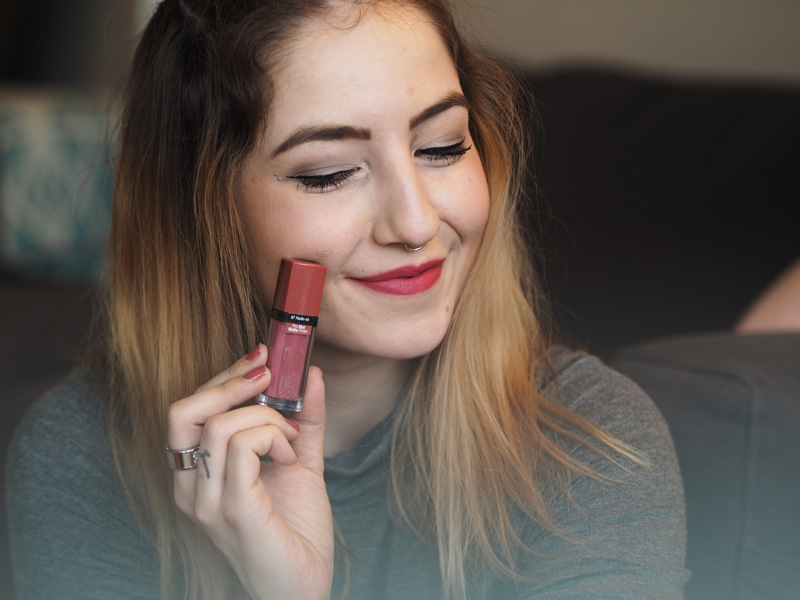NUDE-IST je právě ta první, kterou jsem si koupila v Outletu, kupodivu teda ještě za vyšší cenu než jsou ty online, což mi moc hlava nebere, ale to nevadí. Tenhle odstín má už v názvu to, že se dá počítat mezi ty nude, i když já prostě jako nude vnímám trochu jiný barvy. Tahle je ale suprově neutrální a se studeným podtónem. Tady při tom focení mi navíc zrovna dokonale ladila s lakem na nehty. Tenhle odstín a ta tmavě červená jsou rozhodně moje dvě favoritky.