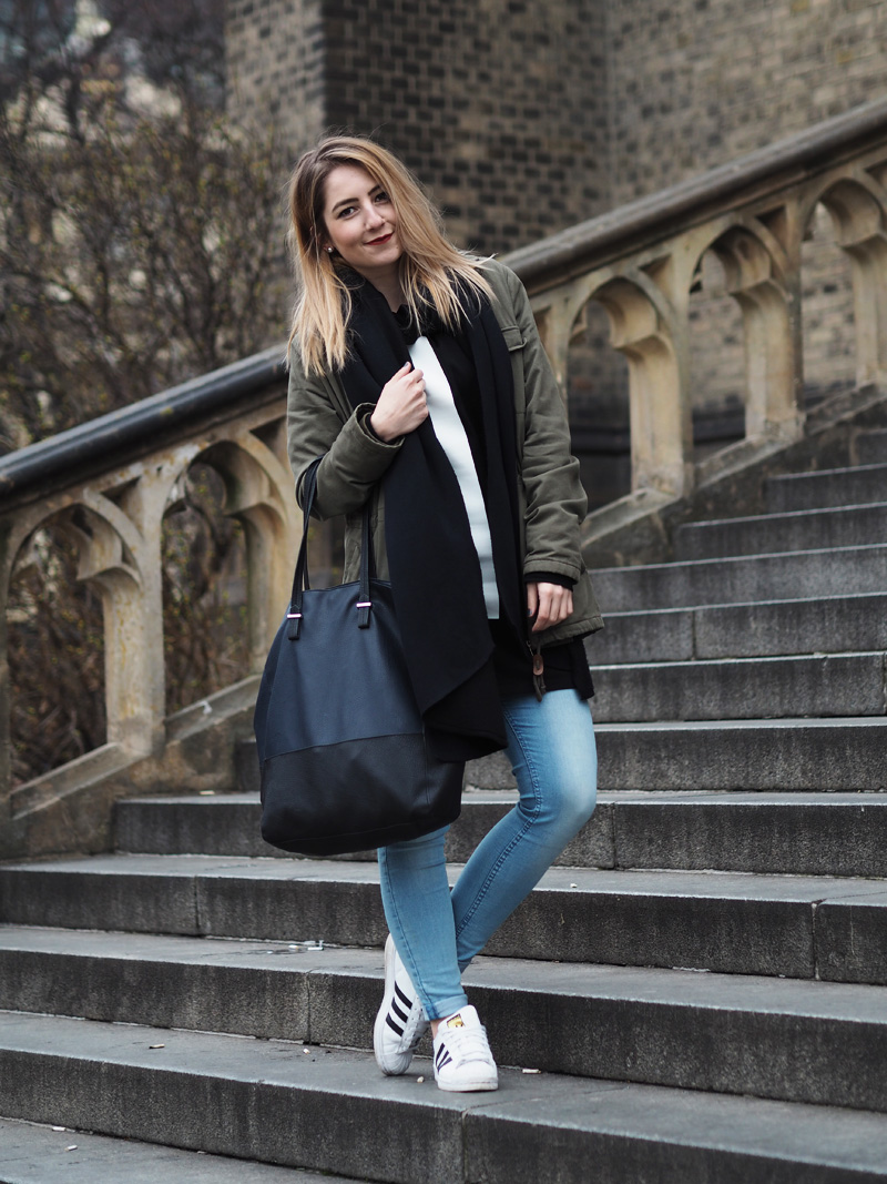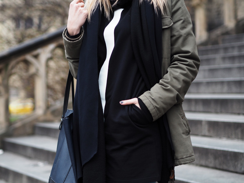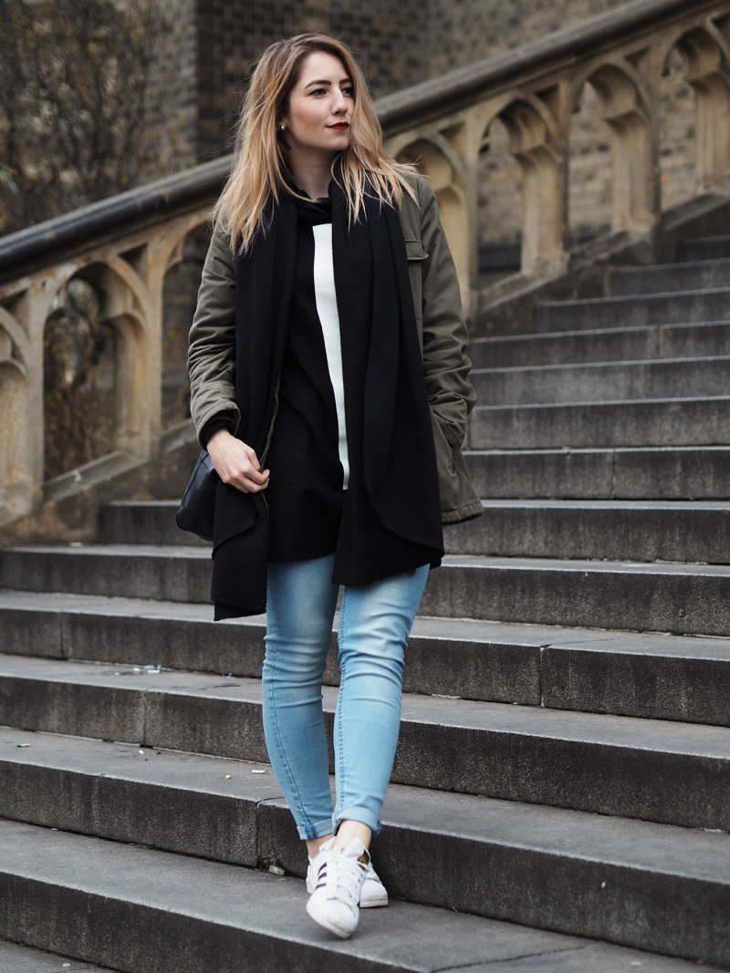 A abych nezapomněla zmínit outfit, zvolila jsem pro změnu uplnou pohodu, na celodenní sezení v křesle ideál. U Aničky jsem pár týdnů zpátky viděla tuhle boží mikinu a nemohla jsem jí dostat z hlavy tak dlouho, než mi přistála doma taky. Po tom, co má celej blogovej svět růžovýho bombera ze Stradivaria jsem si totiž řekla, že si přestanu kupovat tenhle mainstream a najdu si aspoň občas něco originálního. A přestože bych sebe na úlovky na Fleru netipovala ani omylem, stalo se. K mikině jsem ještě přidala jediný světlý džíny, co mám a který jsem neměla už sto let, protože jsem v nich bývala moc narvaná (minulej čas, ueeeeej podruhé!). No a zbytek už dávno znáte, takže tak.
