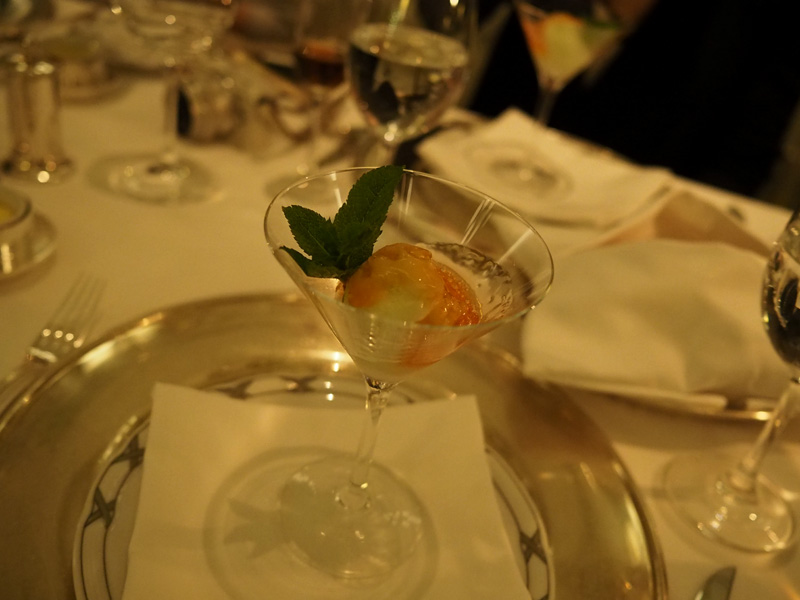 Jednotlivý jídla byly zas naprosto speciální, úžasný a vynikající a nejvíc mě teda dostal limentkovej sorbet jako prostřední chod aneb “gastronomická pauza”, kterej byl zalitej jakousi polevou z aperolu. Nic lepšího studenýho jsem snad nikdy neměla.