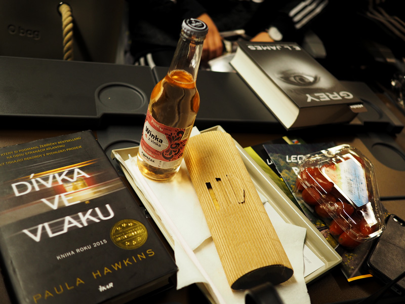 Jako cestovní prostředek jsme tentokrát zvolili vlak. Jeli jsme Leo Expressem, kterej mi vnitřkem připomíná letadlo, má dokonalej a obsáhlej jídelní lístek (což dopředu nikdo z nás nevěděl, takže jsem si vezla jídla na 8mi hodinovou cestu :D). Původně jsme seděli každej jinde, ale když se za Olomoucí začal vlak vyprazdňovat, sesedly jsme se aspoň my s Nikčou k sobě a celou cestu strávily spolu. Wifina samozřejmě nefungovala, takže došlo i na zanedbávaný knížky.
