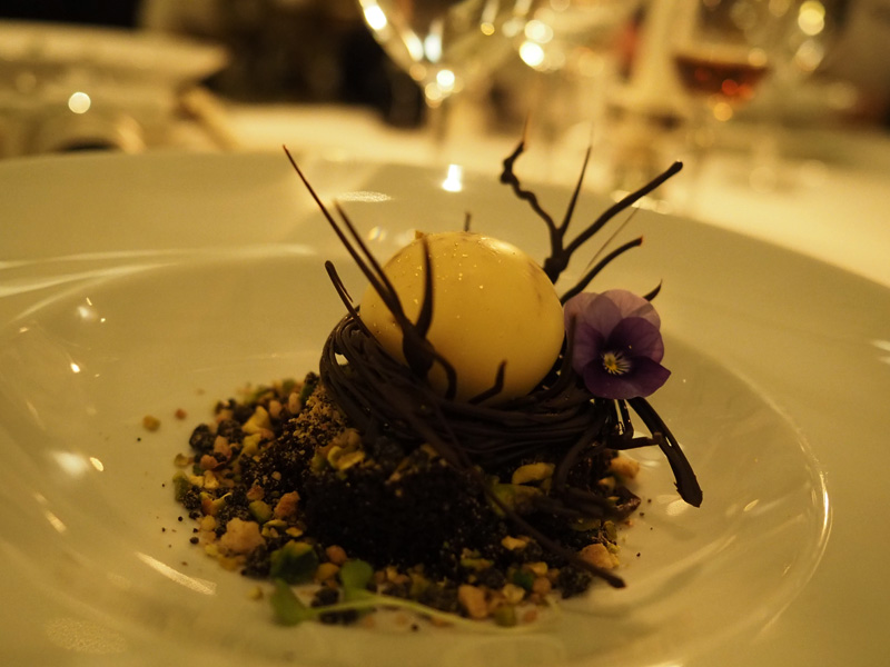 Nejestetičtější dezert, čokoládový hnízdo s vajíčkem z likéru, který jsem já opatrně dala pryč a s snědla jen to samotný hnízdo, protože já a vaječnej likér, ehm, nenene.