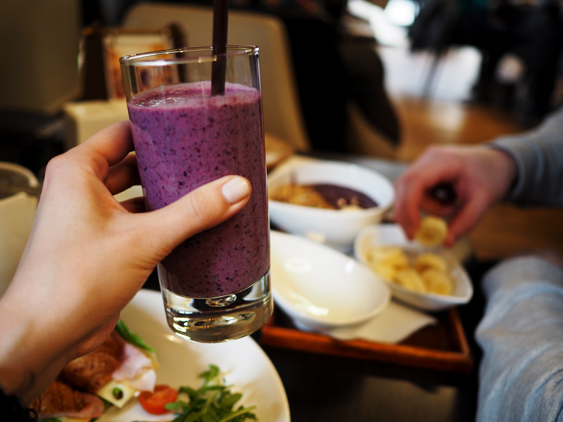 Kromě toho jsem si dala smoothie (cornflakes, sojový mlíko, zázvor, lesní plody a med), což bylo taky moc dobrý, ale strašně sytý a strašně hutný, takže po snídani a tomhle brunchi už to na mě bylo trochu moc. #hamounek