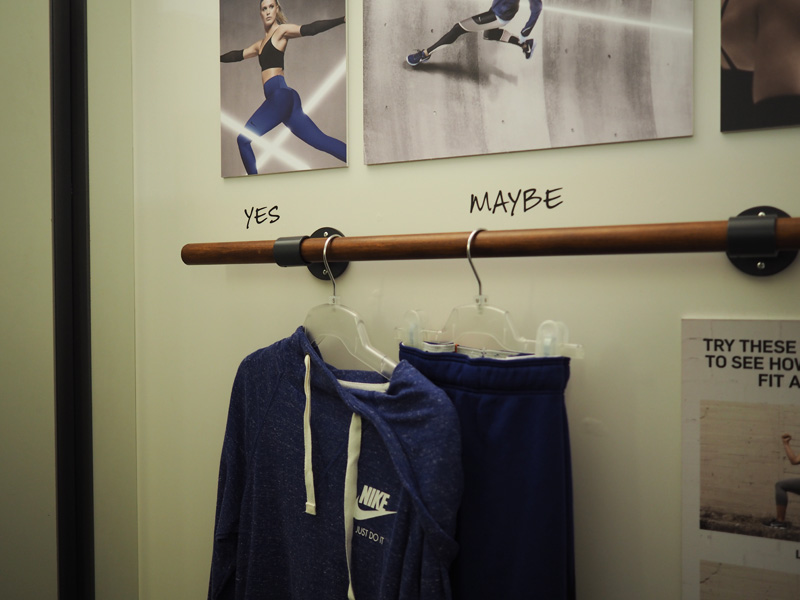 Pokračovali jsme prohlídkou pár obchodů, kde jsem si chtěla vybrat něco k narozkám. Proběhli jsme i Nike, kde jsem si zamilovala modrou mikinu. Modrá a Nike, to bych k sobě dřív nikdy neřekla. I když, když už jsem u toho, co bych o sobě nikdy neřekla, spadalo by tam určitě i vybírání dárků v sportovním obchodě.