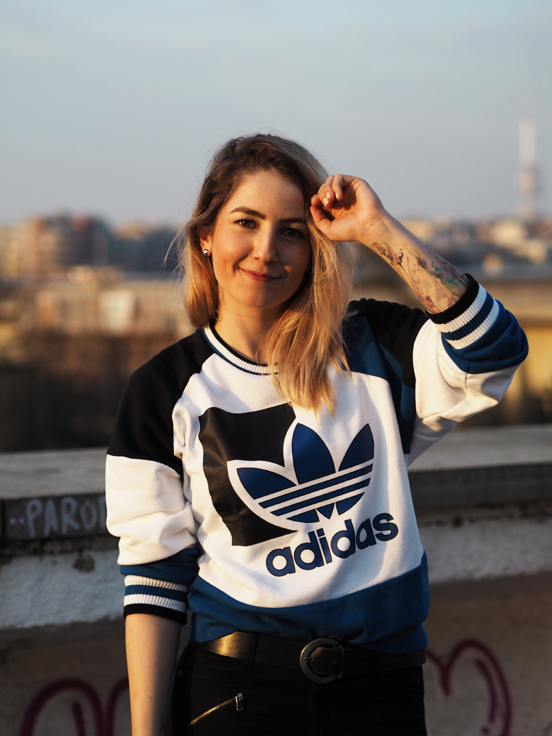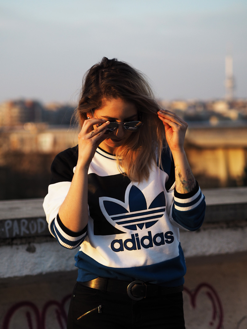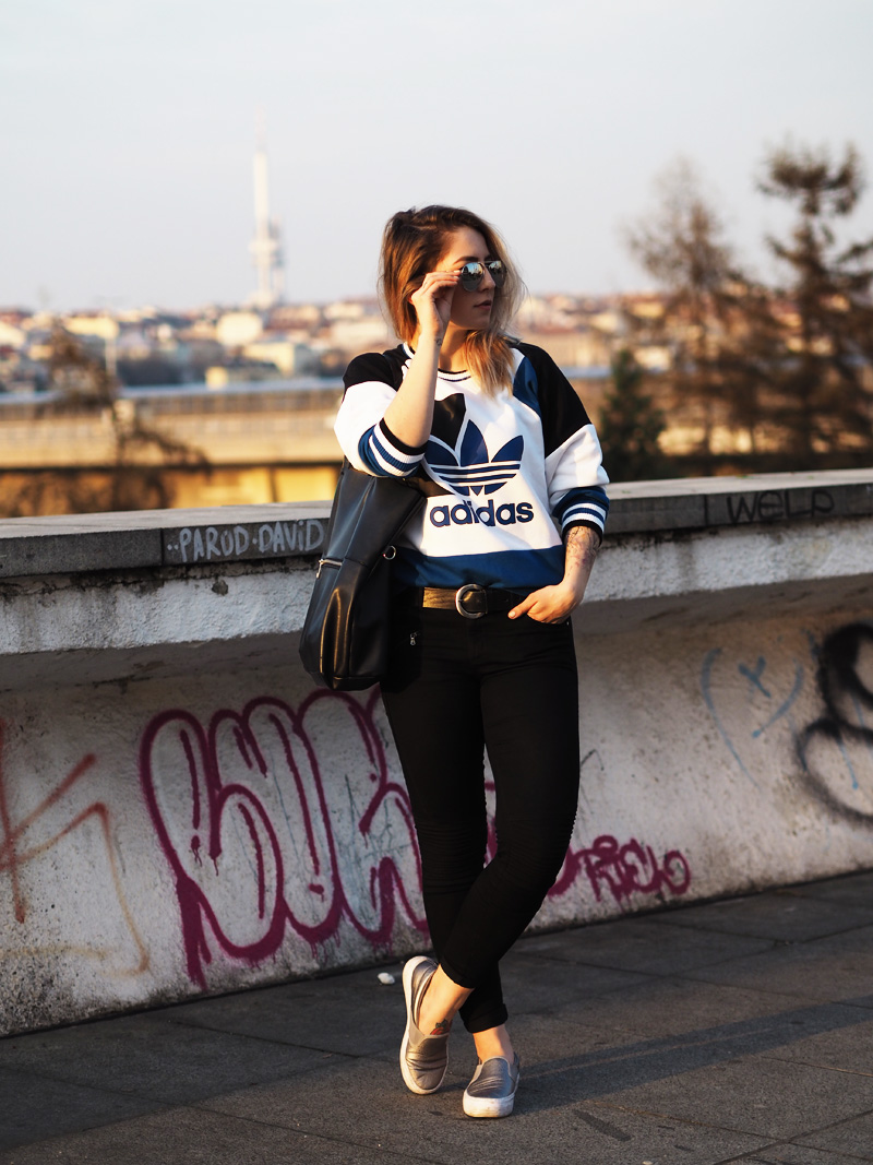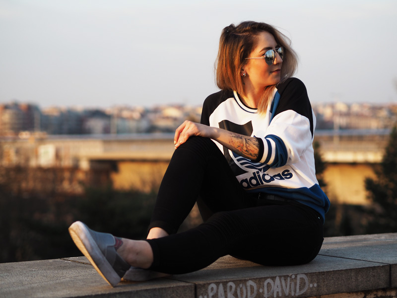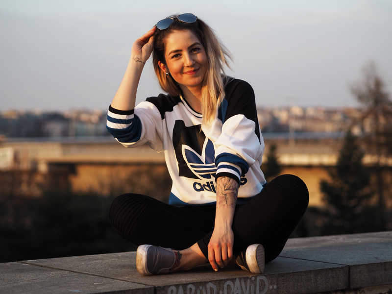 Tyhle fotky jsou snad jedny z mých uplně nejnejnejoblíbenějších, co jsme s Kubou kdy vyfotili. Jsou z pondělka, kdy jsem měla hezky sportovní den, tak jsem se i sportovně oblíkla. Ráno jsem si ve svý namotivovaný náladě na novej režim dala Kaylu, při který mi opět málem upadly nohy a odpoledne jsem ještě zvládla legday ve fitku. No a pak šla konečně na rande, poseděla na Náplavce, místo alkoholu, kterej tam popíjeli všichni už snad od tří, si tam dala salát (což jsem ale hned včera stihla “napravit” :D) a po cestě domů jsme si ještě udělali foto-zastávku na Vyšehradě a chytli tohle super večerní sluneční světlo. Hrozně se mi to líbí, na Vyšehradě to mám celkově hrozně ráda, ať už proto, že tam je YamYam (jídlo stále na prvním místě, ehm ehm) nebo proto, že tam jsou nádherný procházky a výhledy. No a líbí se mi to i proto, že ta mikina, co mám na sobě, byla láska na první pohled. Šla jsem si do Adidasu vybrat nějaký věci na cvičení k narozeninám a nakonec jsem odešla s teplákama a touhle mikinou, kterou bych teď nejradši ani nesundávala. Docela mě proto i štvalo, že bylo v pondělí tak teplo, protože mi v ní bylo totální vedro 😀 No však to znáte určitě taky!
