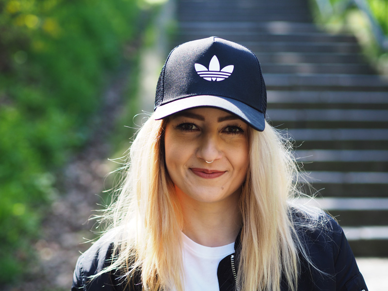 Já mám sportovní styl hodně ráda, takže za mě naprosto skvělá kombinace :). Kšiltovka Ti vážně sluší a ty blonďatý vlasy jsou taky pecka 🙂