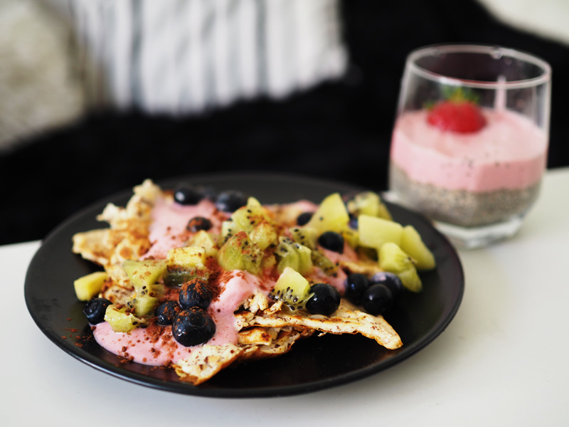 Příprava snídaní mě prostě baví nejvíc a nejradši bych vlastně snídala celej den. Proč to takhle nemůžu fungovat? 😀 Tohle je zrovna klasická ovesná placka, sojovej jogurt, jahody a borůvkovej ZERO sirup.