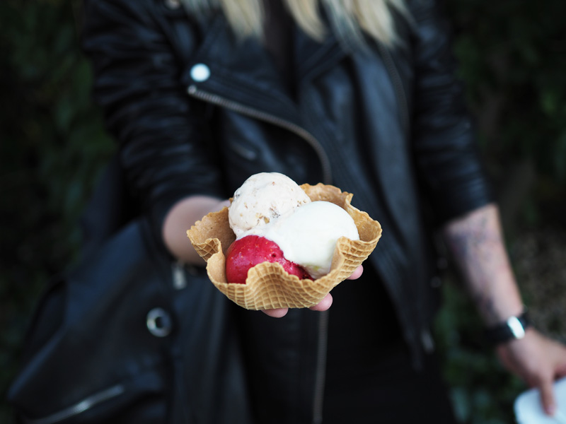 Naprosto dokonalá zmrzlina ze Světozoru, o kterým jsme opravdu netušili, že máme asi 5 minut od baráku a vlastně nějak nevím, jestli je to dobrý zjištění nebo ne – mám totiž obavy, že mě to tam bude táhnou mnohem víc, než je zdrávo. I když… v nabídce jsou teď “super ovocný zmrzliny”, který obsahujou 80% ovoce a žádnej přidanej cukr ani tuk, takže vlastně proč ne! Já jsem ochutnala tu malinovou a jakoooo, to jsou fakt jen rozmixovaný maliny, takže přesně něco pro mě. Ale protože bych to nebyla já, abych zkusila jen tu zdravější variantu, dala jsem si ještě ořechovou s kousky slanýho karamelu. Protože slanej karamel je další z mých mnoha jídelních lásek a teda řeknu Vám – pro změnu dokonalost. Nově prý mají na zmrzliny i kelímky, ve kterých zvládnete donést kopečky v pevném stavu i až domů. Já jsem teda domů čekat nevydržela…