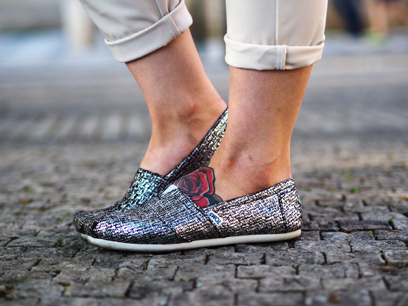 K outfitu bych ale ráda řekla to, že tyhle kalhoty z Manga jsem si minulej rok dost zamilovala a pak je nějak přestala nosit. Jsou světlý no. I teď se v nich necejtím zrovna hubeně, ale bavěj mě a jsou neuvěřitelně pohodlný a od toho mýmo převažujícího sportovního stylu je to příjemná změna. K nim jsem přidala nový discotomsky, který jsem dostala od Urbanluxu na svůj výlet po Americe a taky naprosto geniální detail ve formě vykukujících šňůrek podprsenky.