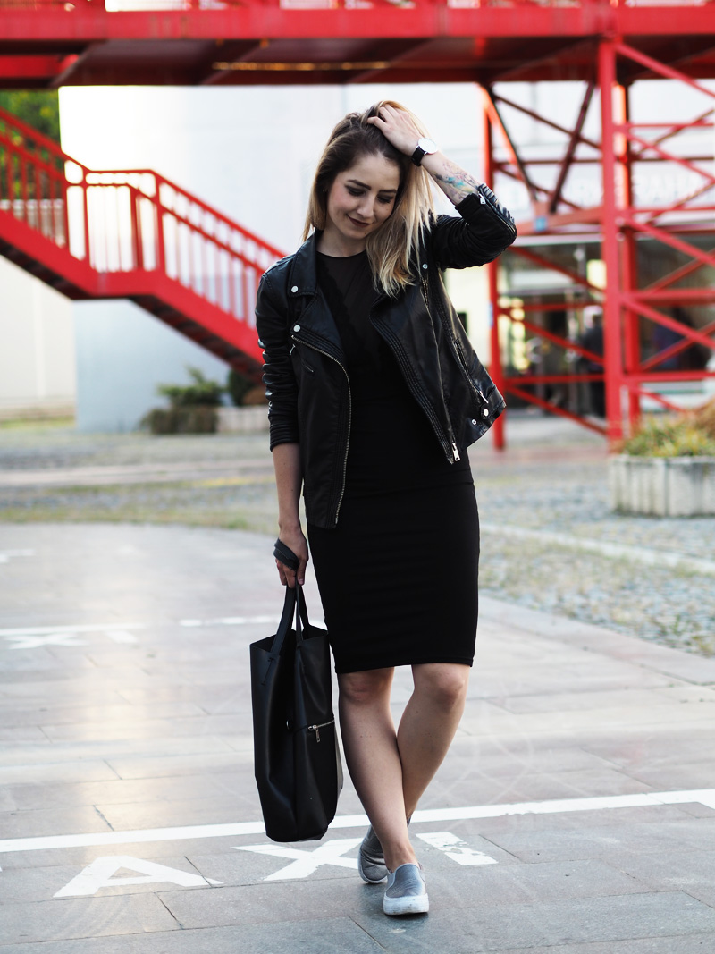 Tenhle outfit se Vám už líbil na instagramu, takže doufám, že Vás zaujme i tady v detailnějším pojetí. Před nějakou dobou jsem Vám psala, jak ráda chodím s přítelem na rande – přestože spolu bydlíme a jsme spolu denně poměrně hodně času. Psala jsem o tom, jak je důležitý nebrat druhýho jako samozřejmost a jak mě baví se i po několika měsících stále snažit vypadat co nejlíp a doufat, že to ten druhej ocení. Proto jsem se těšila i na naše “půlroční” rande a outfit jsem vymýšlela docela dlouho. Snažila jsem se z Kuby dostat něco ve smyslu, jaký oblečení má na mě nejradši a dozvěděla jsem se to, že obyčejný džíny, tričko, slipony a křivák. A že nemá rád volný kalhoty – to už vím dlouho 😀. Džíny jsem si ale na drink v oblacích brát nechtěla, tak jsem k sliponům a křiváku přidala delší upnutou sukni, ke které jsem místo trička zvolila značně pRůhledný krajkový body, který nepovažuju uplně za kus oblečení “na ven” :D. Křivák ho ale skoro celý zakryl a já se cejtila trochu tajemně a…ehm…rajdičkovsky?! No bavilo mě to, co si budem. A proto mám tak ráda tyhle příležitosti, kdy člověk může vymyslet něco kreativnějšího a odvážnějšího než obvykle, aniž by to vlastně působilo nějak nevhodně a zbytečně vyzývavě.