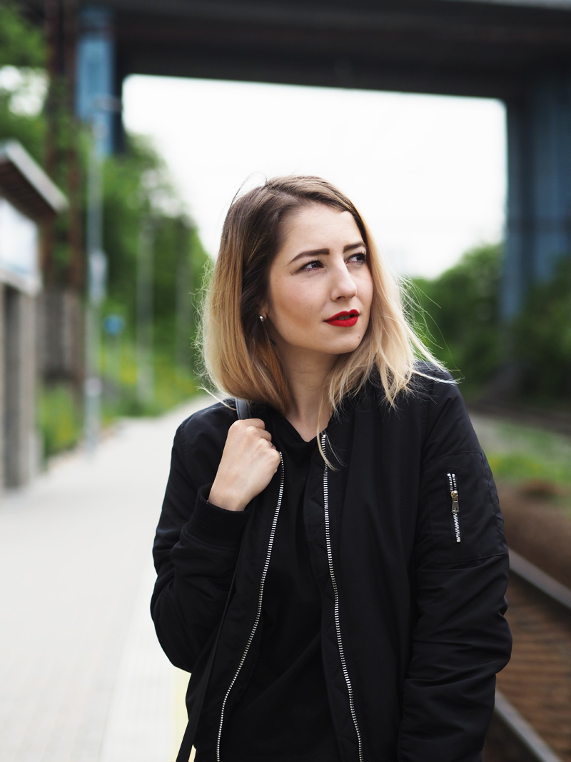 Bomber – STRADIVARIUS / shirt – PULL&BEAR / sweatpants – JUSTPLAY.SK / shoes – NIKE / bag – MANGO / lipstick – SEPHORA MATTE LIP CREAM